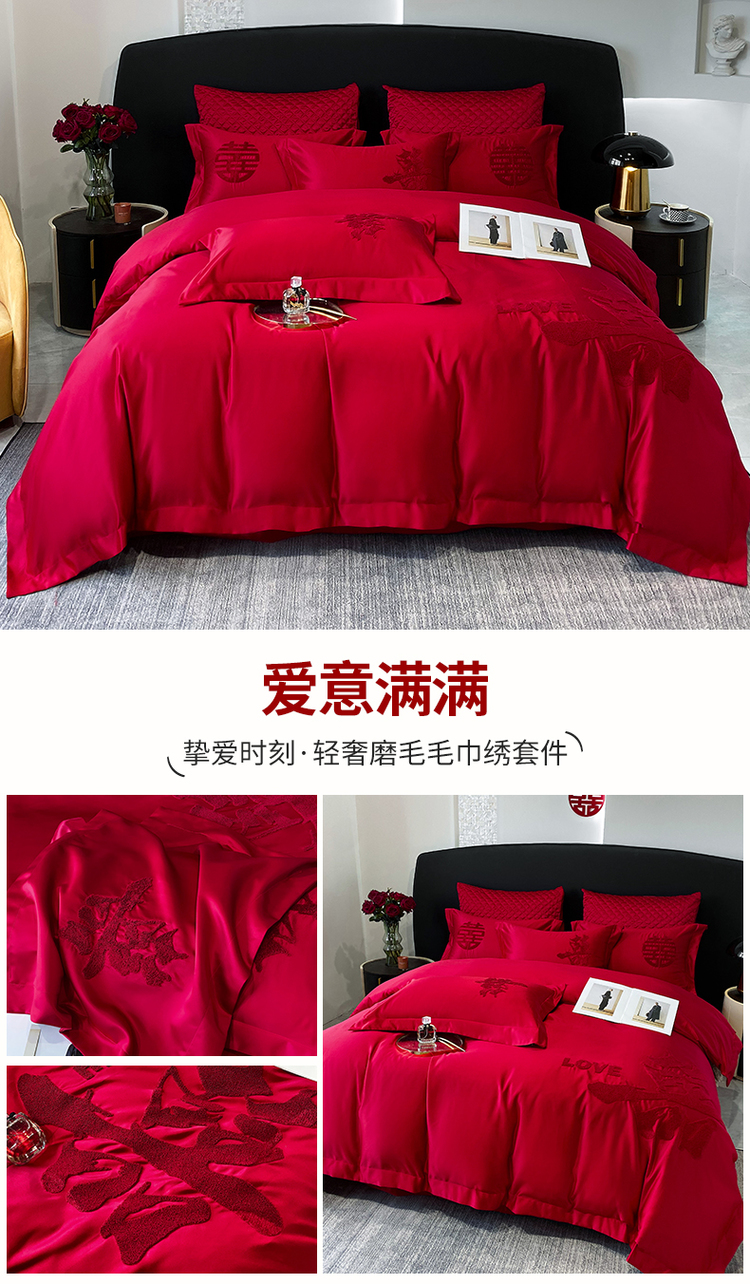 (总)优悦 2023新款轻奢磨毛婚庆毛巾绣四件套,喜愿,喜爱,小确幸,爱意满满,玫瑰花语,甜蜜蜜,相爱,美满
