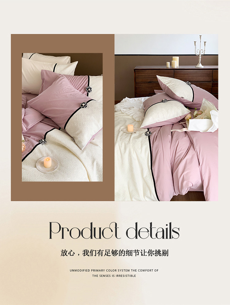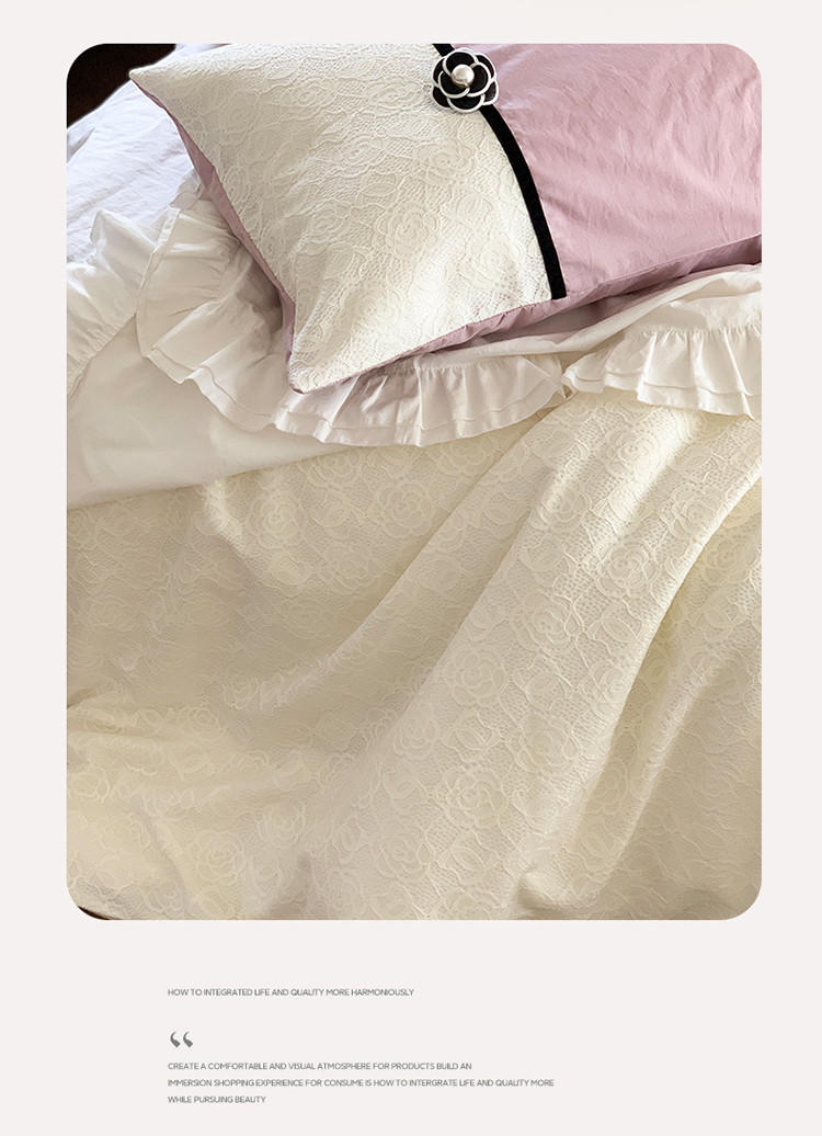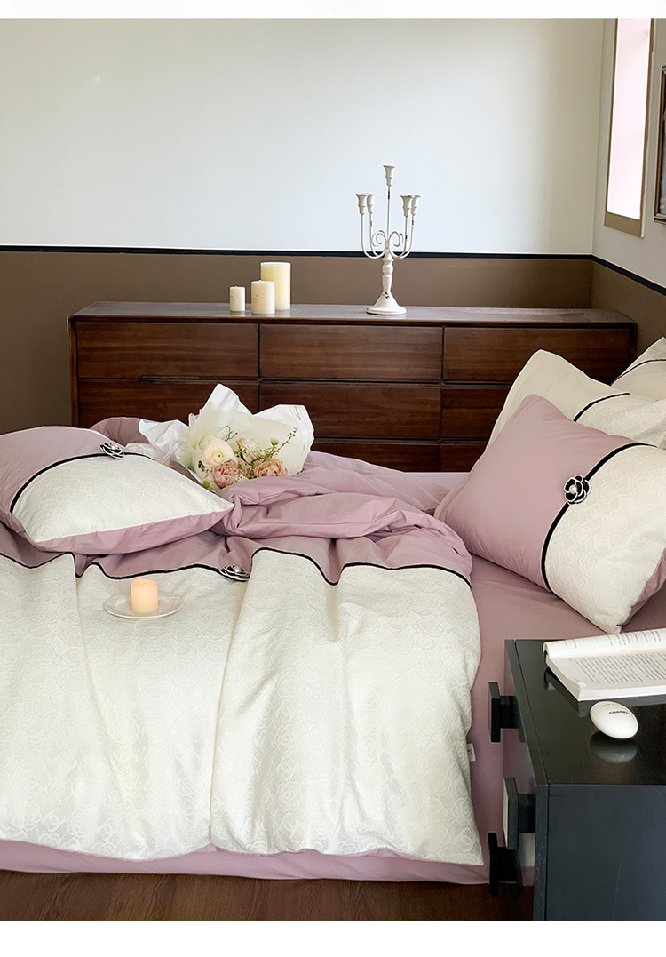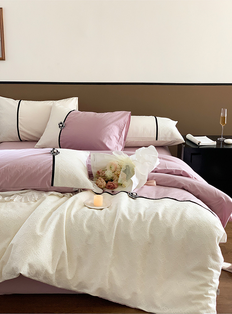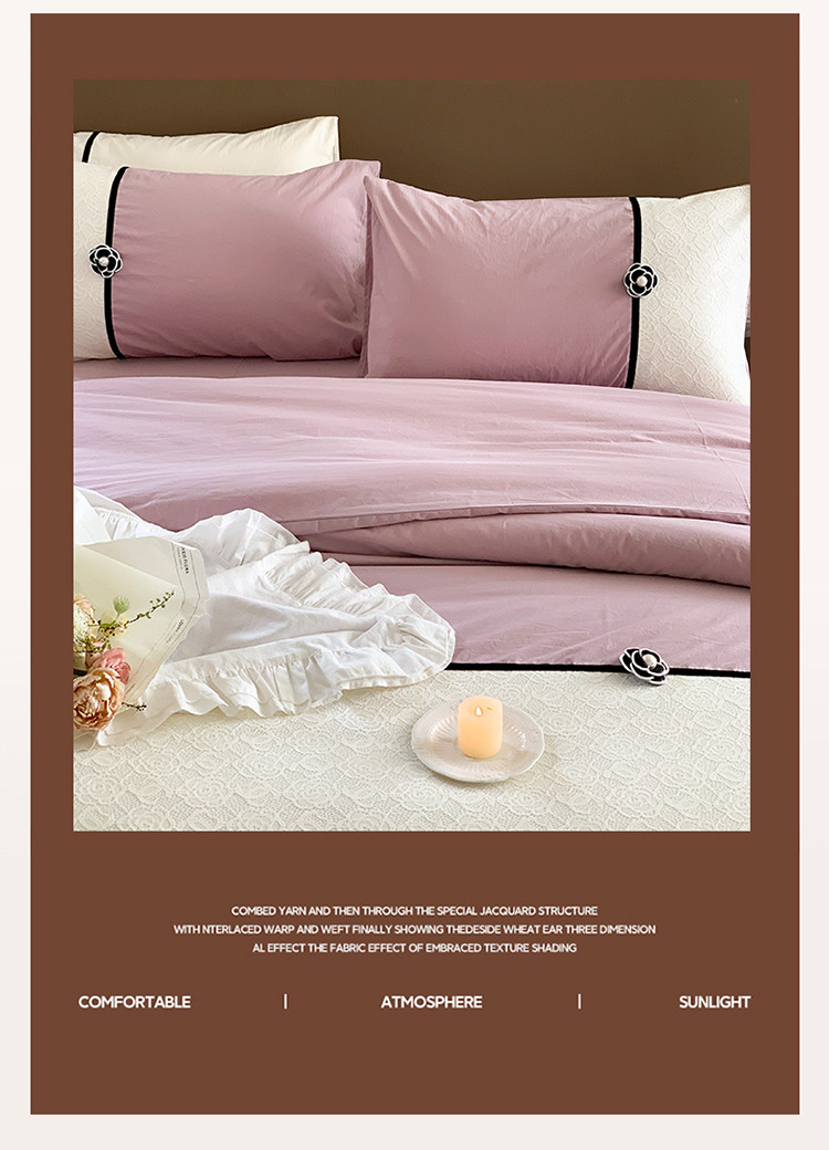 (总)玛奇朵 2025新款韩系少女全棉立体提花四件套-,青纱粉黛