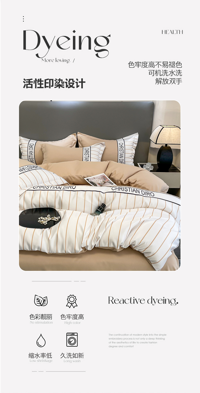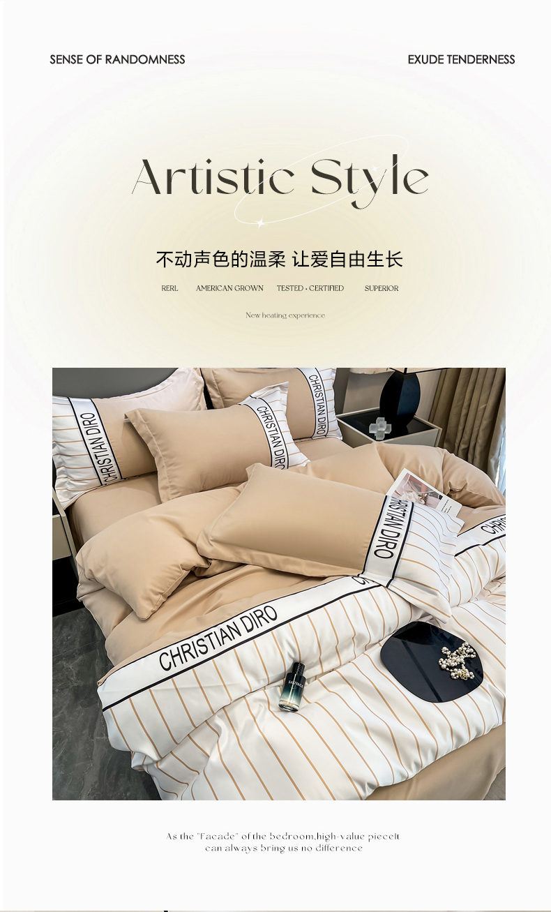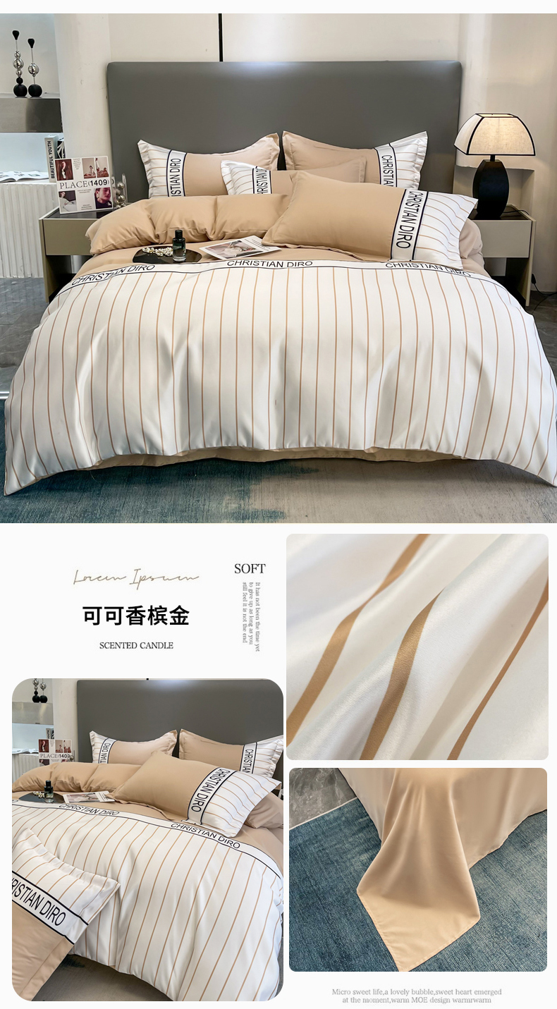 2023新款60S亲肤棉磨毛可可小姐港风时尚四件套 可可香槟金