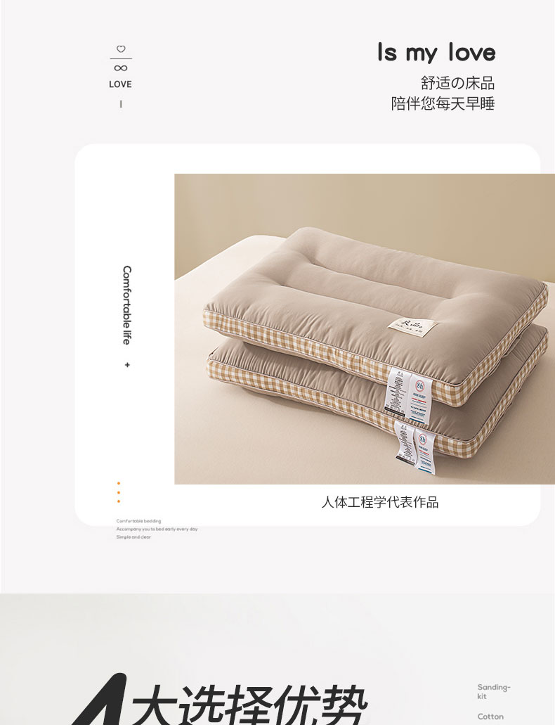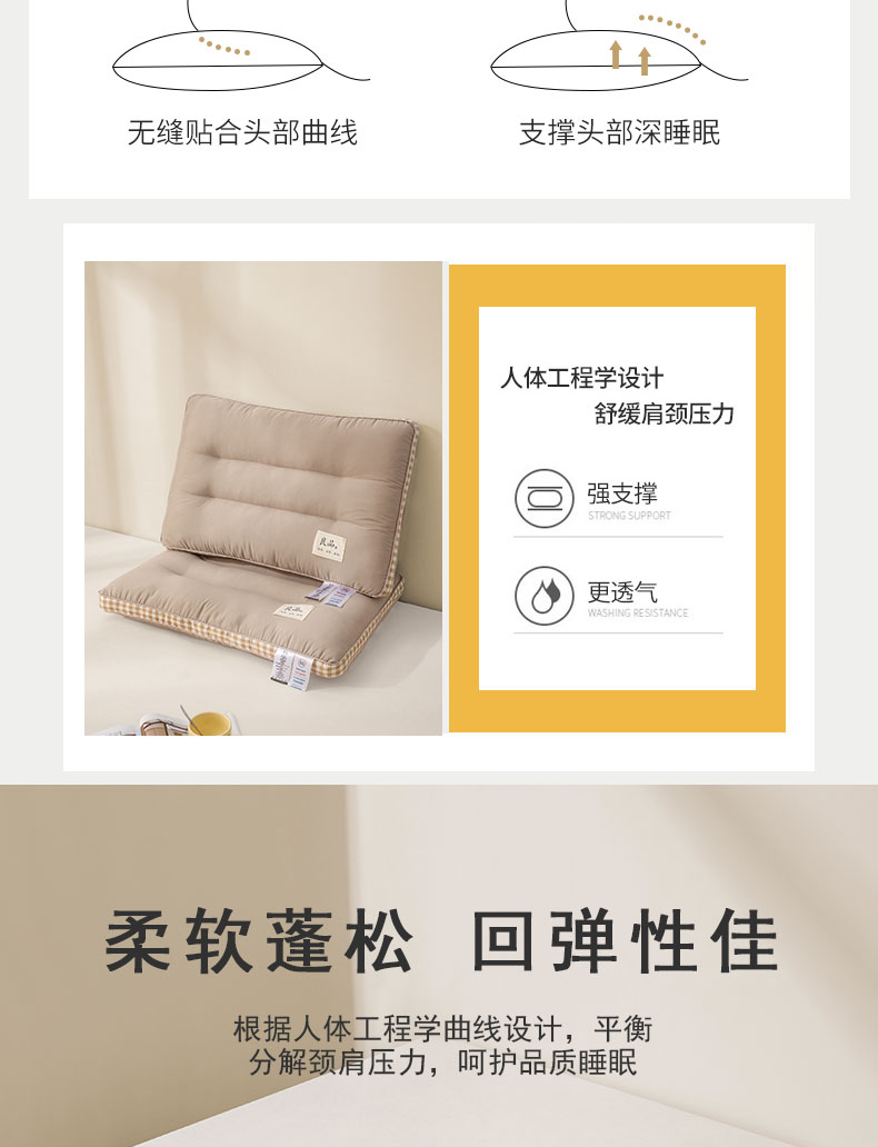 贵夫人 2023新款良品分区舒睡枕枕芯枕头 卡其