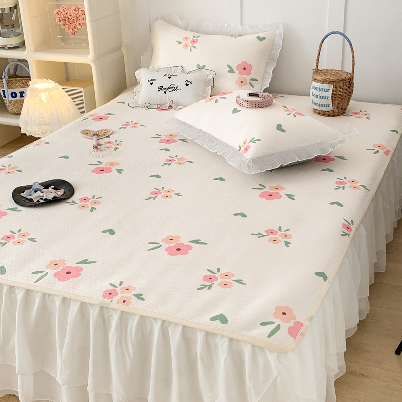 昔可家纺 2023新款双层雪纺纱花边床裙款凉感软席 夏日花