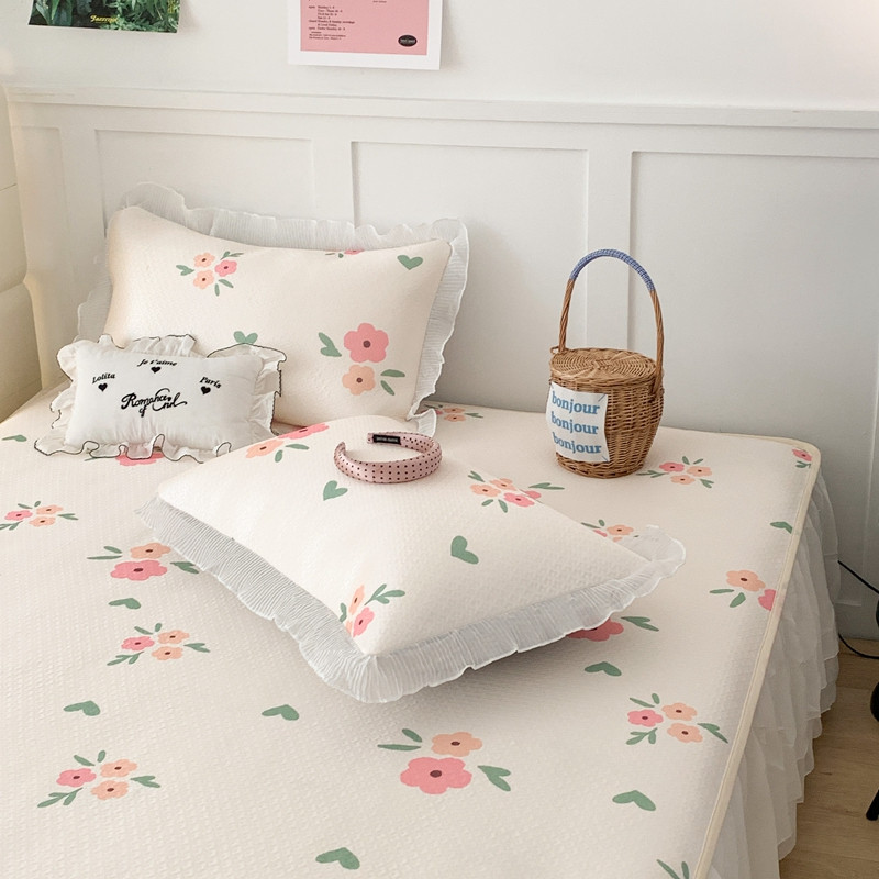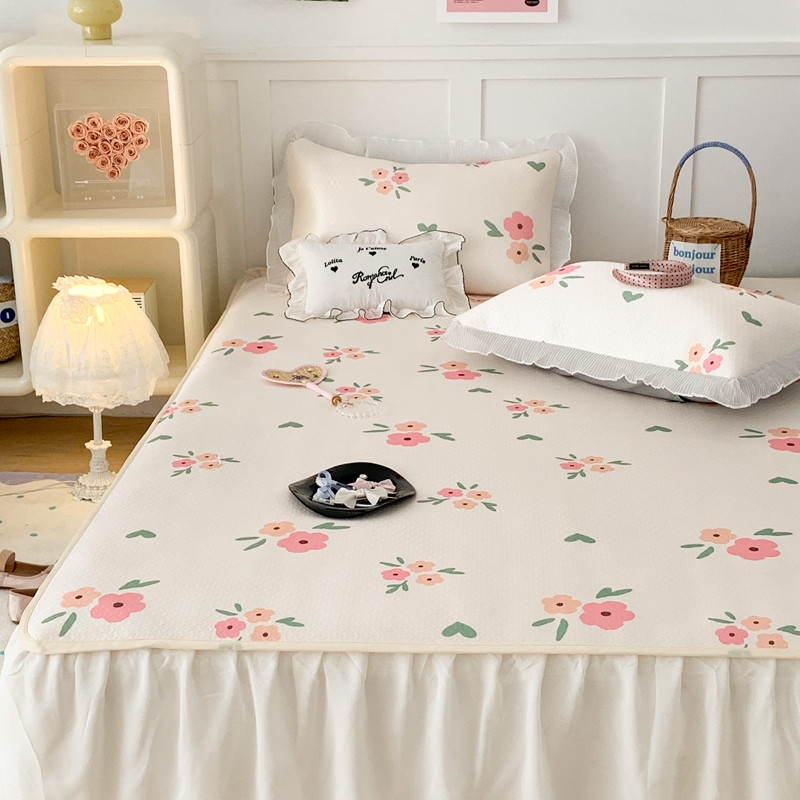 商品名称:昔可家纺 2023新款双层雪纺纱花边床裙款凉感软席 夏日花