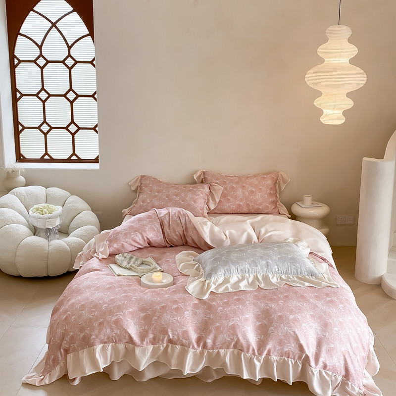 (总)若未家居 2023新款50S兰精天丝法式床裙款四件套-风格一