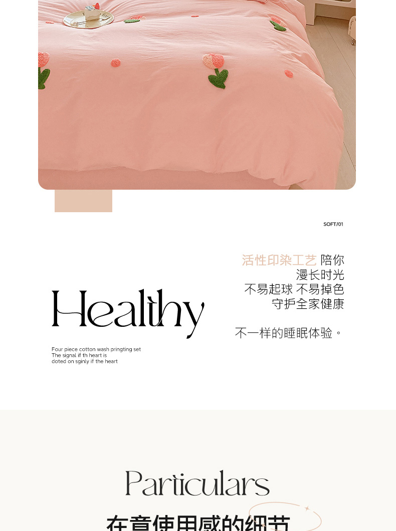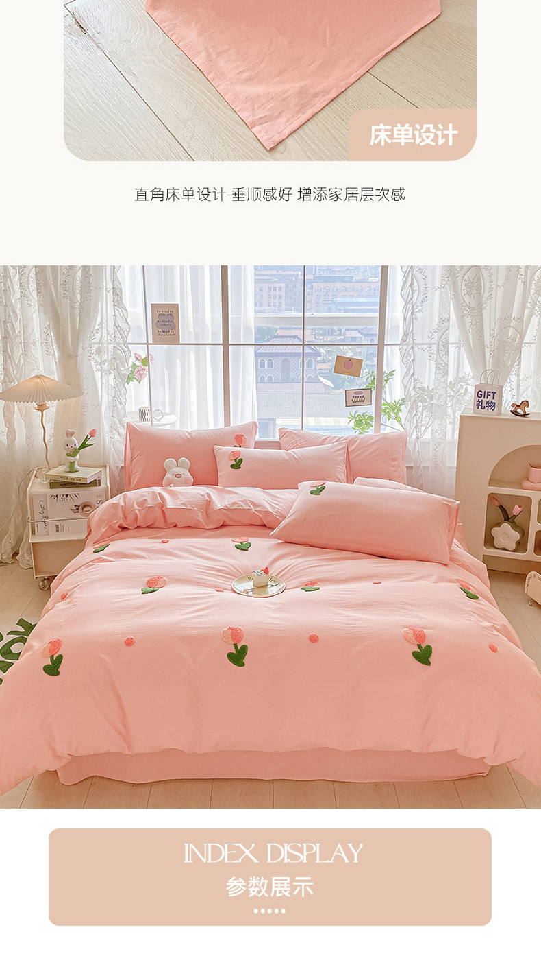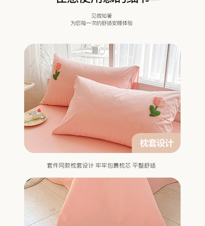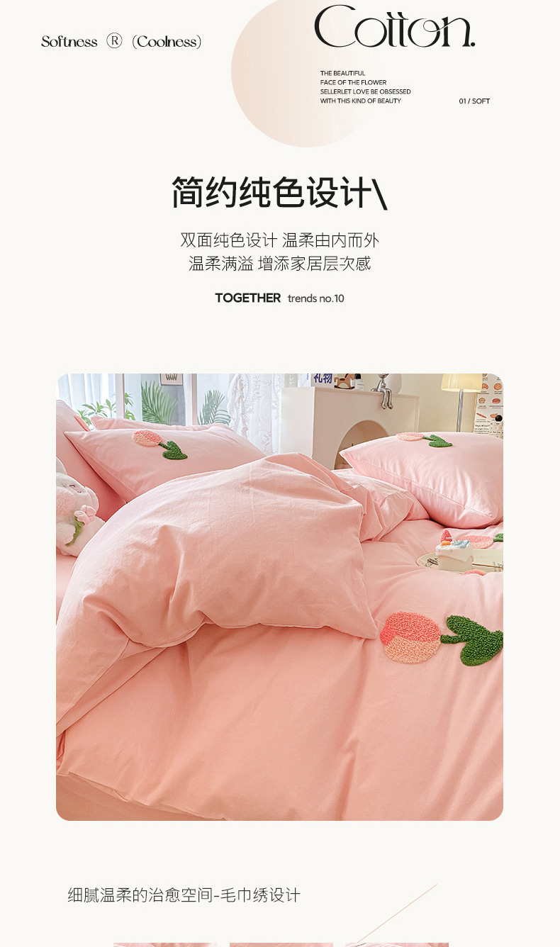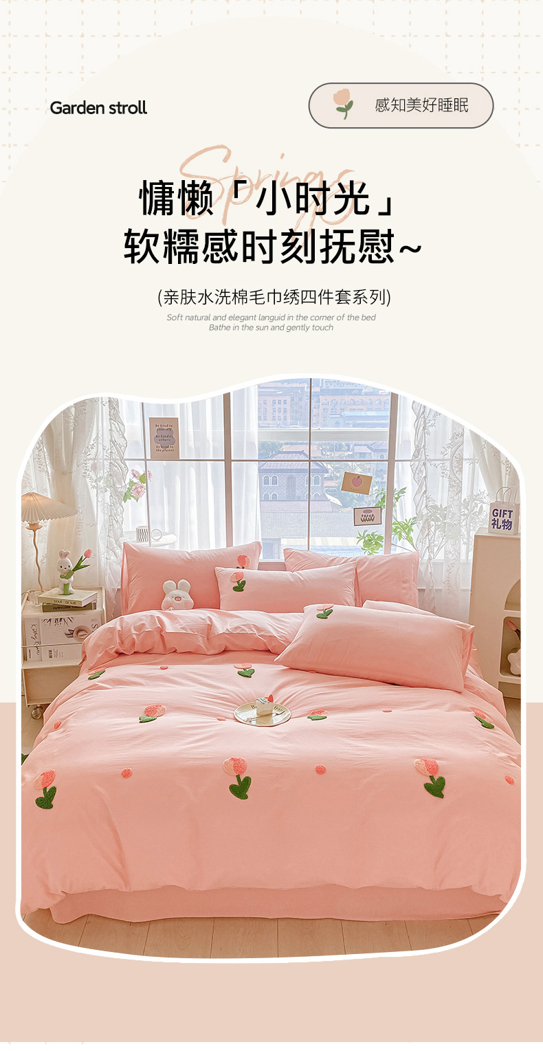 当前位置: 91家纺网 > 商品网购 > 床品套件 > 四件套 > 水洗棉四件套 > 眠帛 2023新款A类水洗棉小清新毛巾绣四件套 郁金香奶油粉