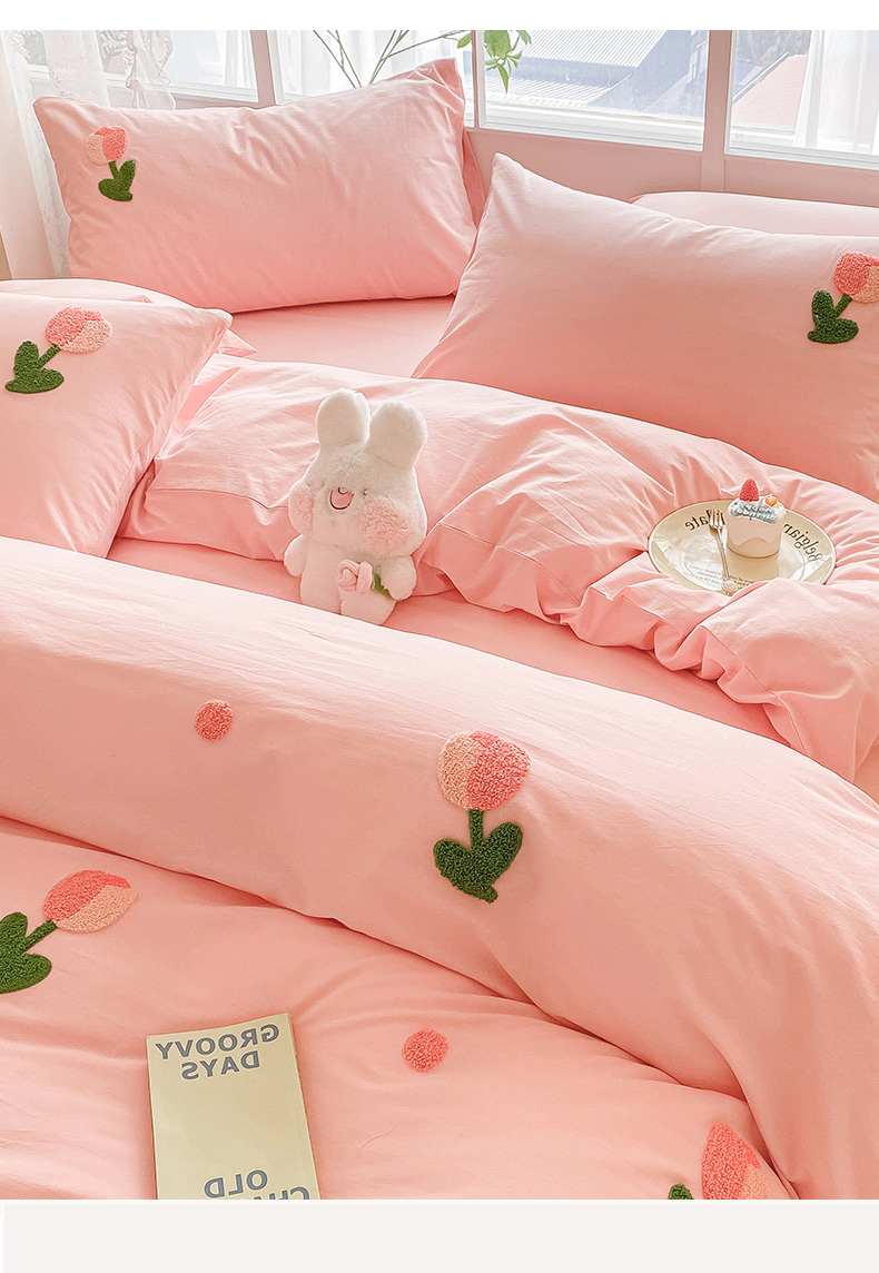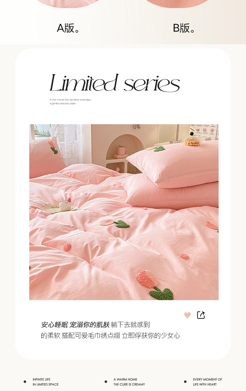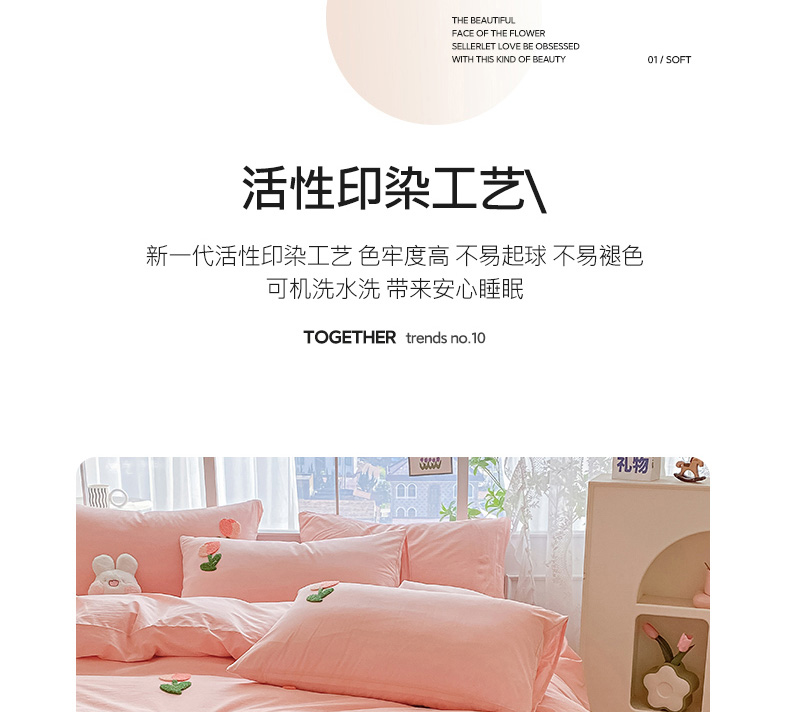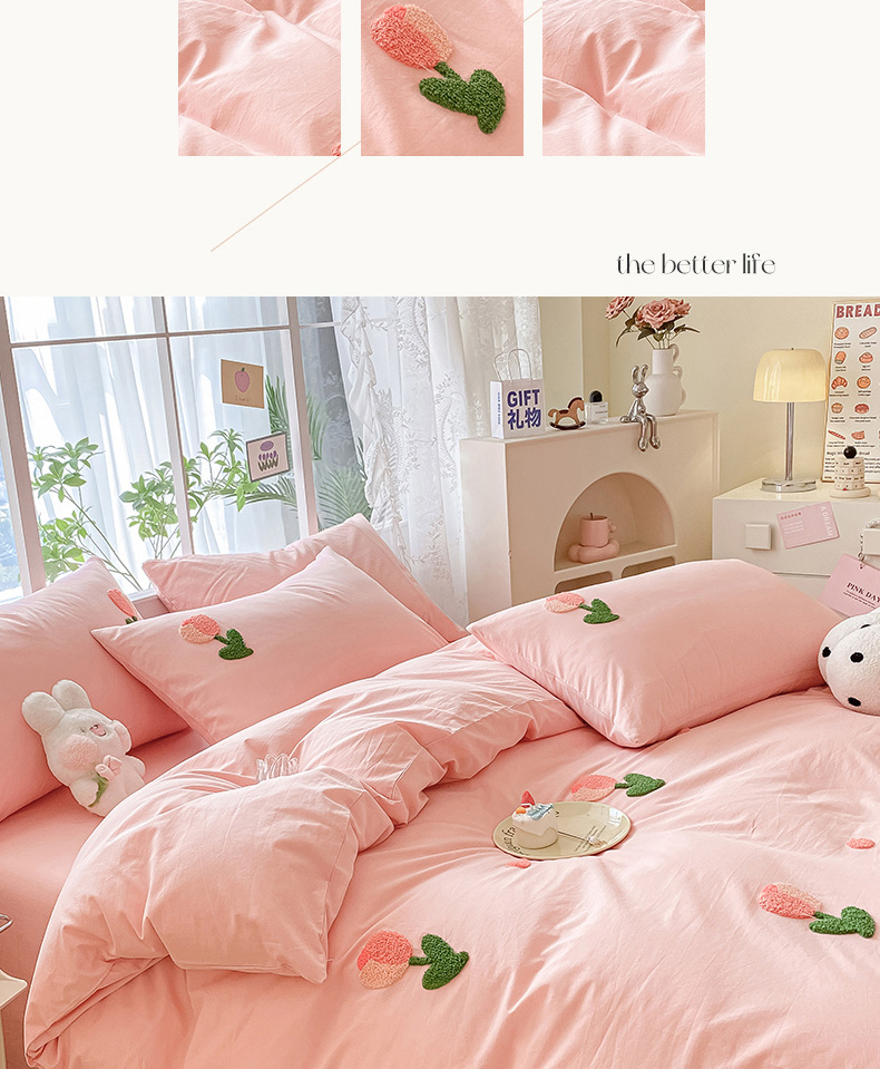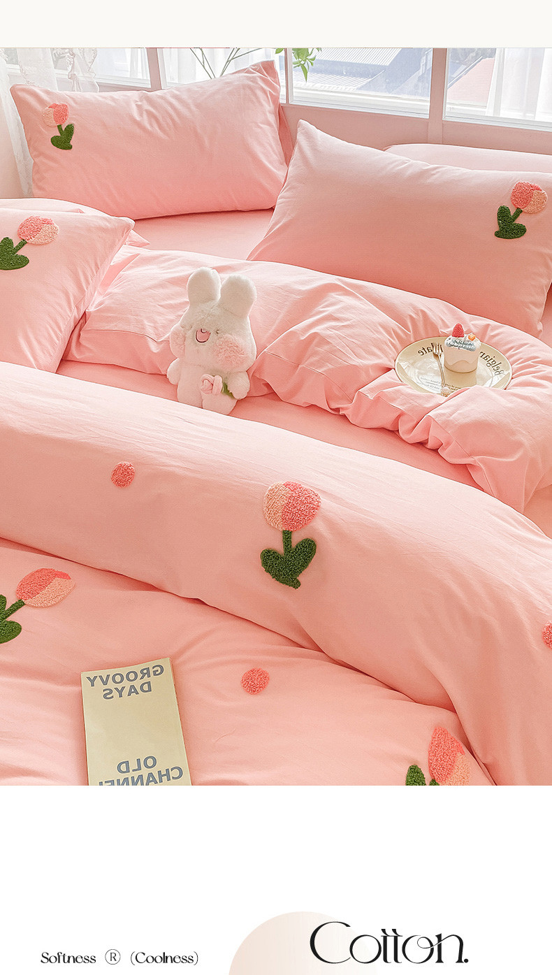 当前位置: 91家纺网 > 商品网购 > 床品套件 > 四件套 > 水洗棉四件套 > 眠帛 2023新款A类水洗棉小清新毛巾绣四件套 郁金香奶油粉