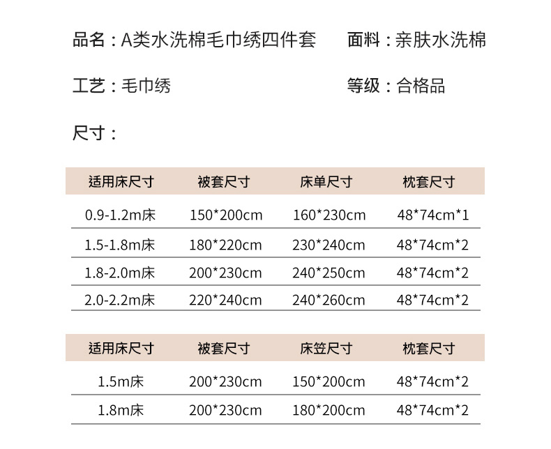 1.8m床笠款四件套(被套200*230cm) | ¥80.00 |