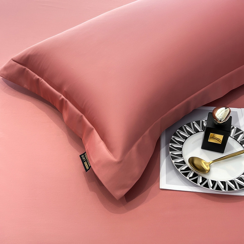 商品名称:莱阁亿 2023新款高支高密纯色新疆长绒棉四件套单品枕套 丹青桔
