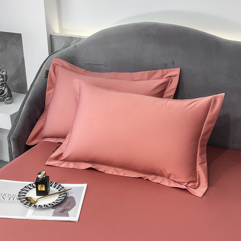 莱阁亿 2023新款高支高密纯色新疆长绒棉四件套单品枕套 丹青桔