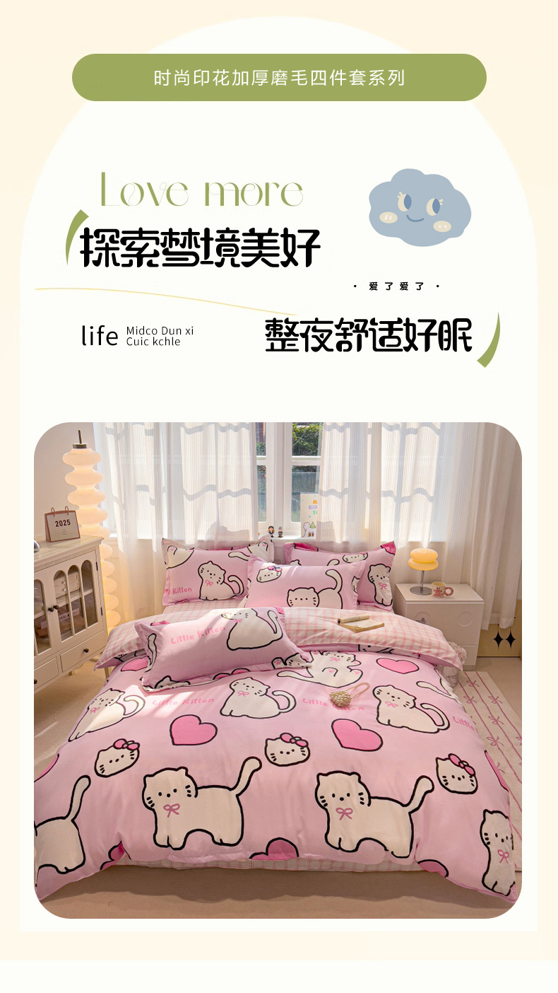 (总)花伞家居 2025新款直播网销斜纹加厚磨毛印花植物羊绒四件套