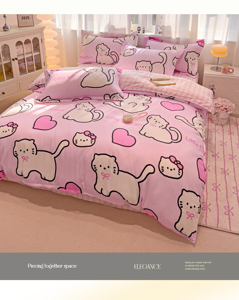 (总)花伞家居 2025新款毛巾绣印花双层纱四件套(提供买家秀),花蝴蝶,肥肥猫,表演的猫,调皮兔,浇花兔,可爱猫,幸福的家,音乐猫