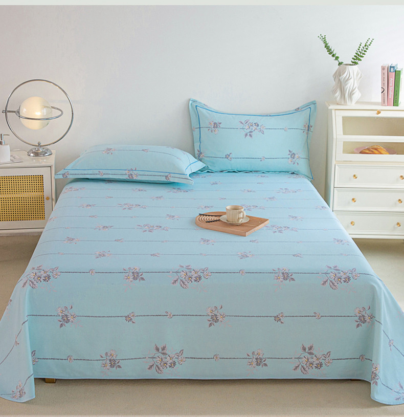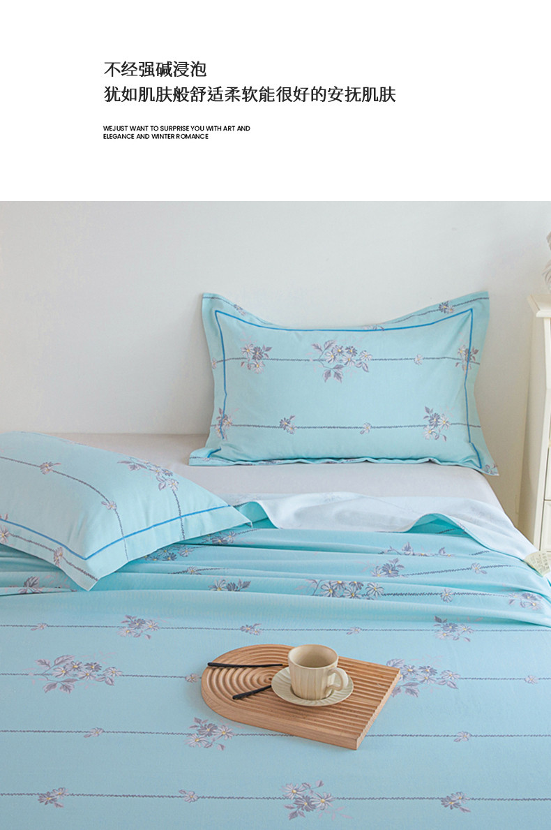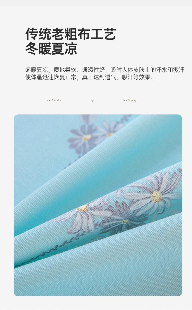 商品名称:首爱 2025新款原棉老粗布床单款三件套 悠然绽放—蓝