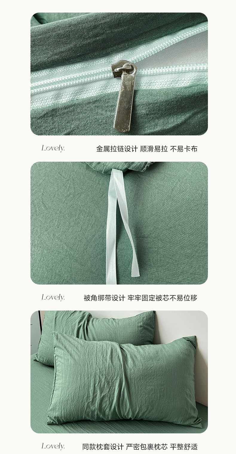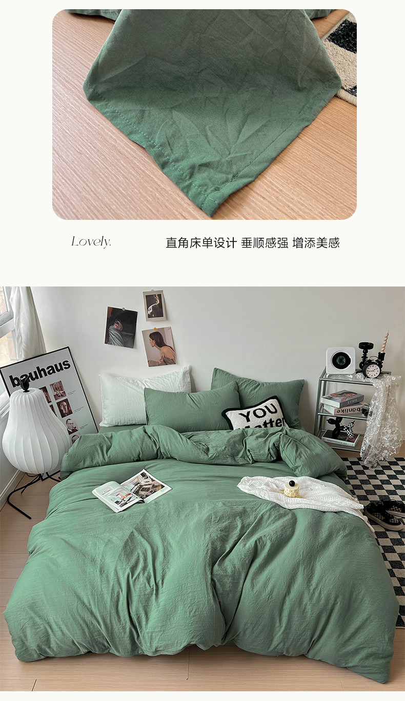 商品名称:水墨江南 2023新款超柔水洗棉简约纯色四件套 暗夜绿