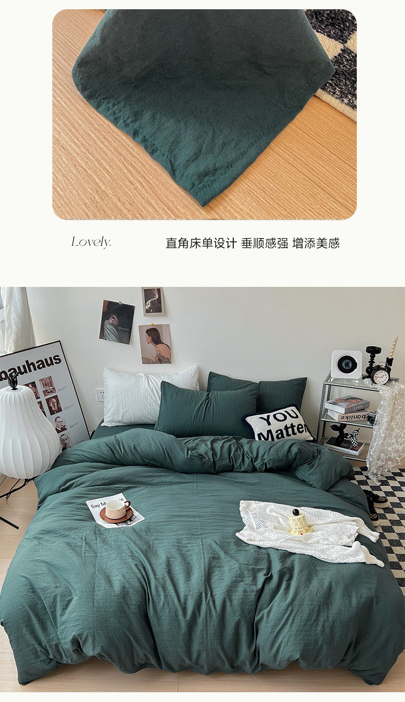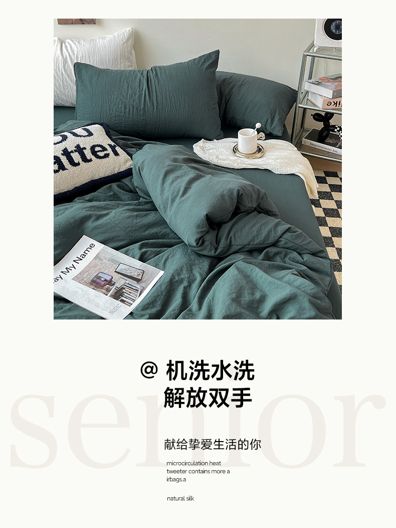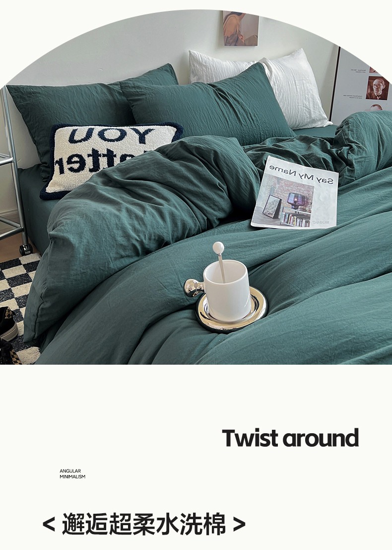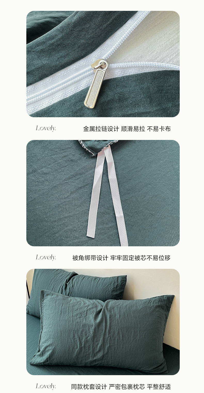 (总)水墨江南 2025新款亲肤磨毛水洗棉纯色四件套,翡绿,暗夜绿,碧蓝,橄榄绿,墨灰,浅灰深灰,雅白,藻绿米黄,中驼