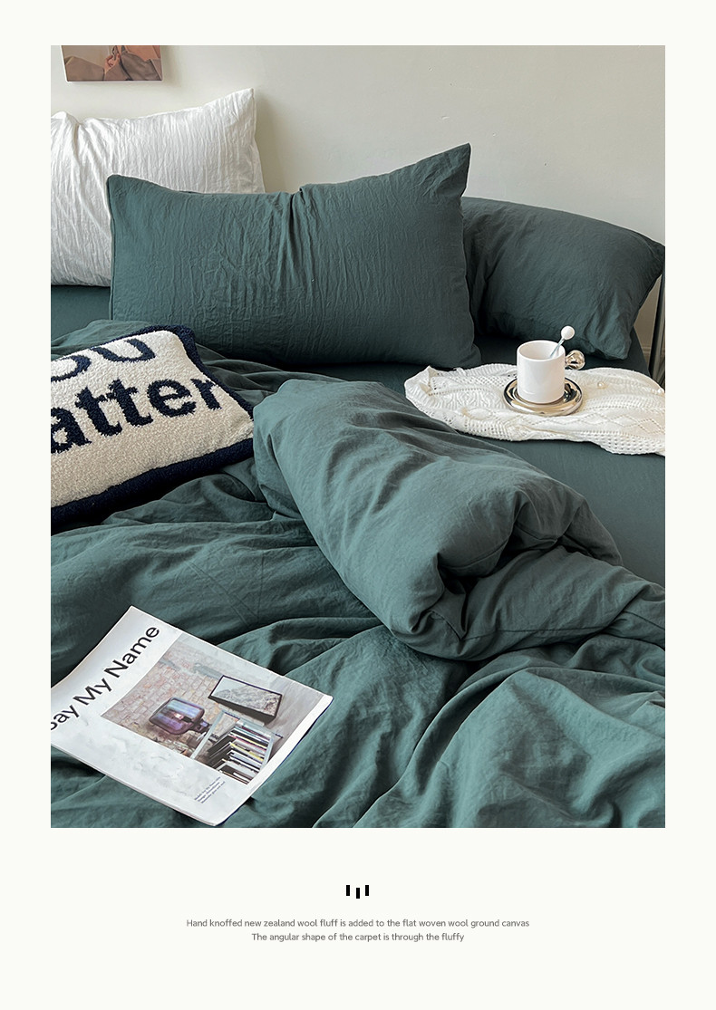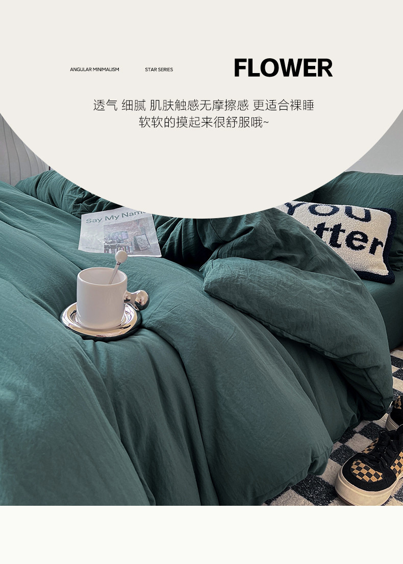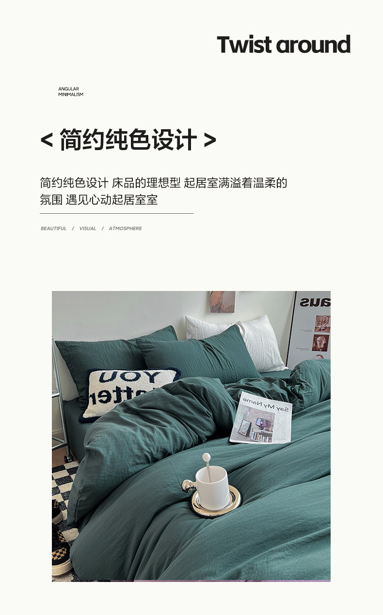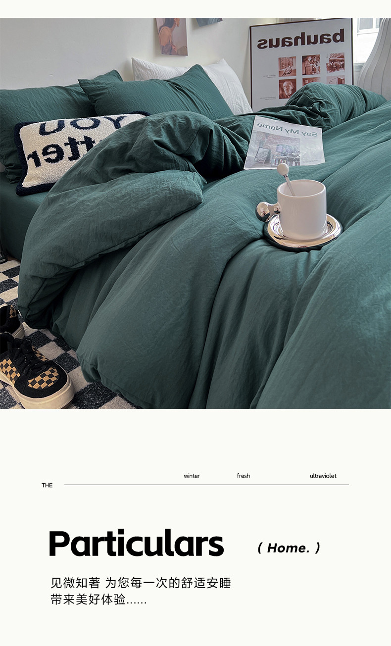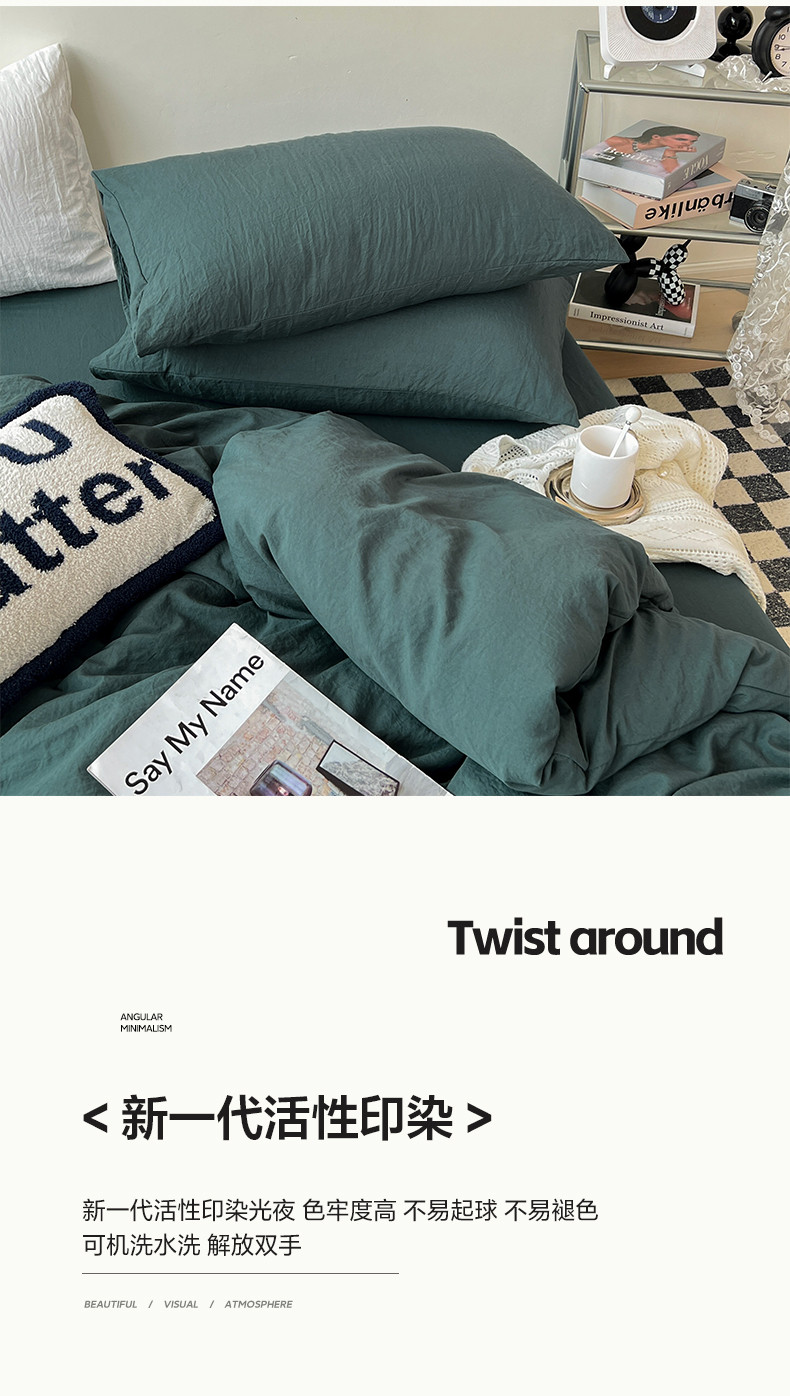 (总)水墨江南 2025新款亲肤磨毛水洗棉纯色四件套,翡绿,暗夜绿,碧蓝,橄榄绿,墨灰,浅灰深灰,雅白,藻绿米黄,中驼
