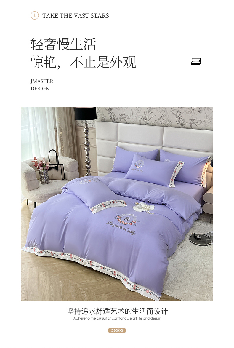 易辰美 2024新款A类高克重水洗磨毛云柔棉刺绣四件套 彐青色