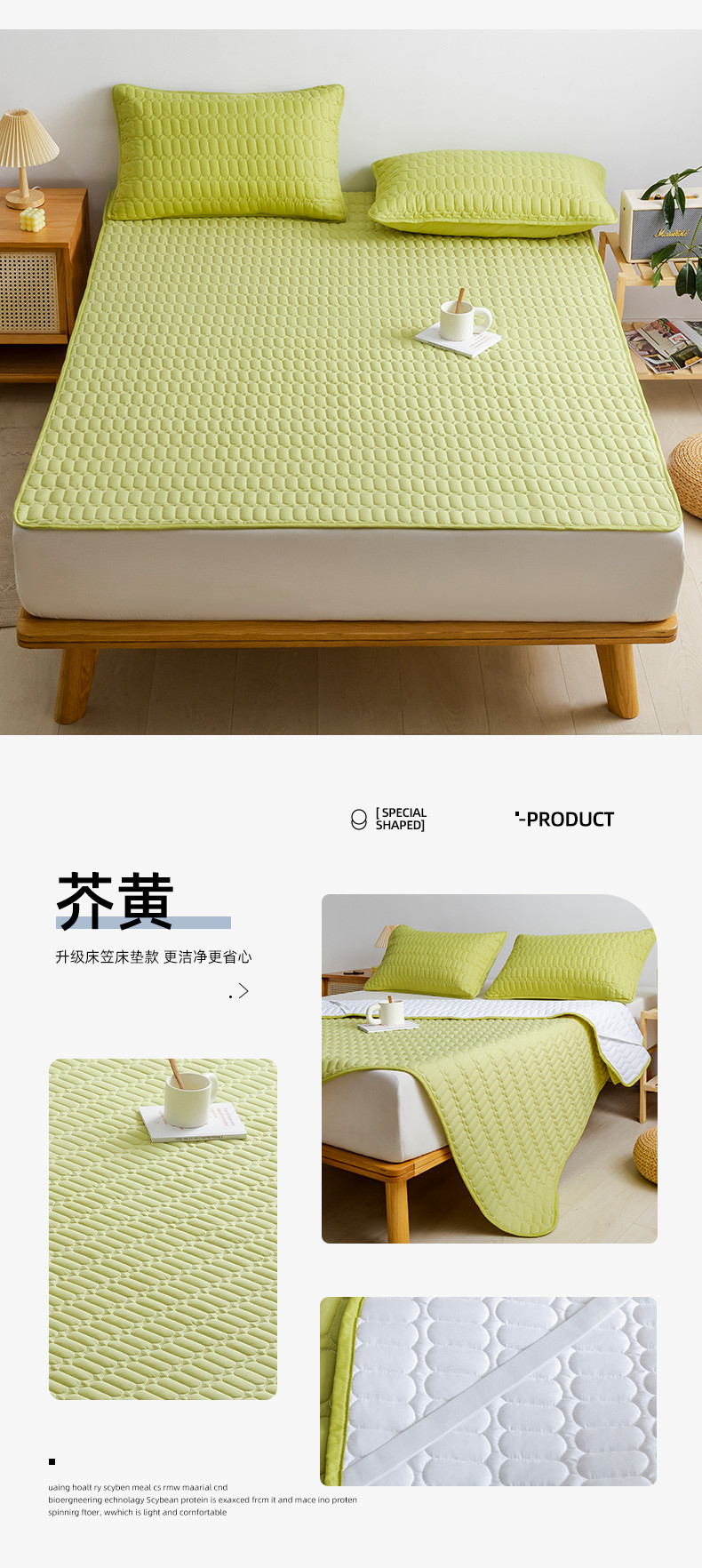 商品名称:恩和 2024新款防水夹棉床笠床垫床垫款 床垫款芥黄