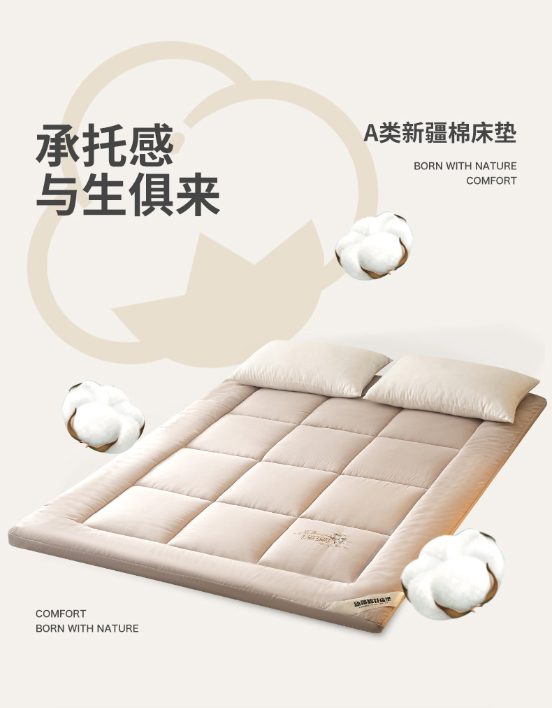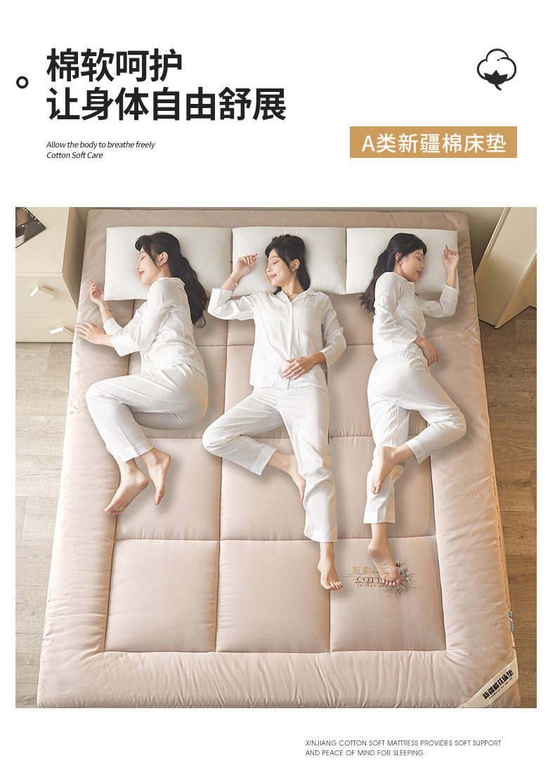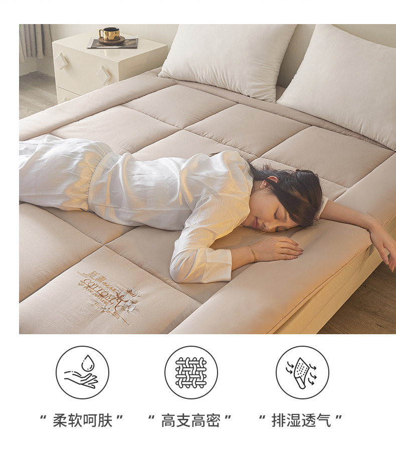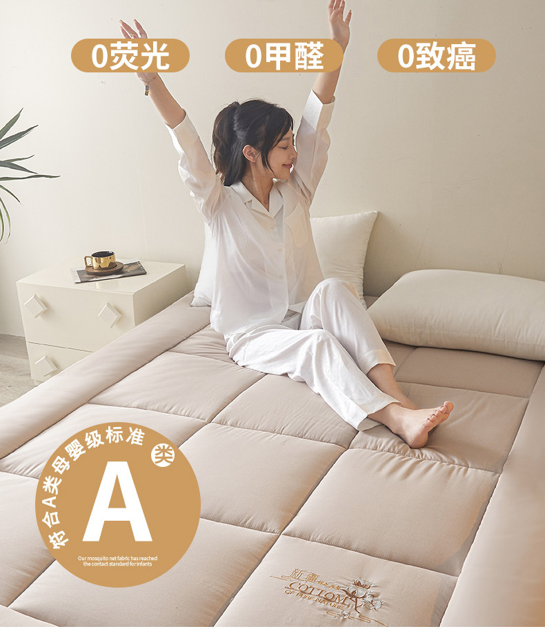 100%新疆棉花全棉棉花床垫软垫棉絮垫子床褥垫子学生单人垫被全棉包检测,米色