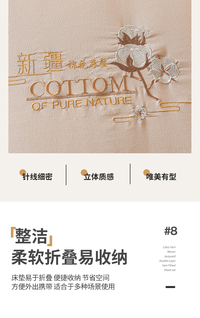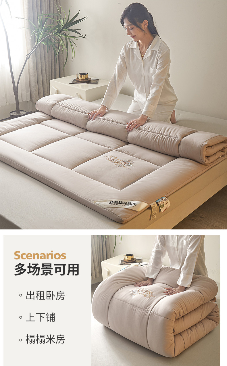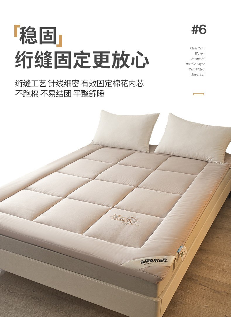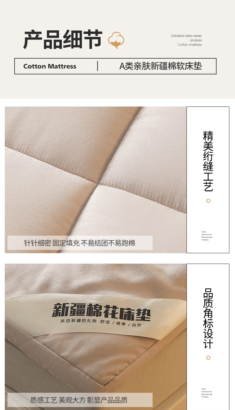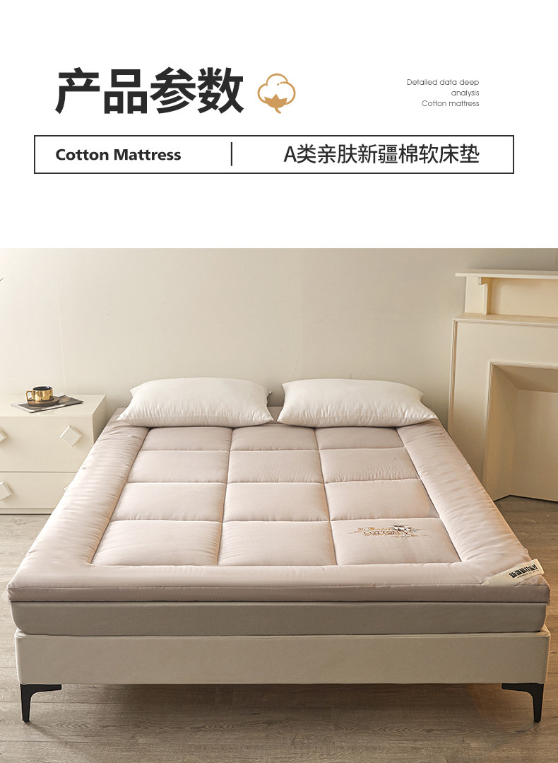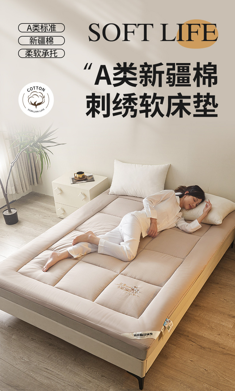 商品名称:千百笠 2023新款新疆棉花万针刺绣床垫垫被软垫棉花垫被褥棉絮淳朴-驼