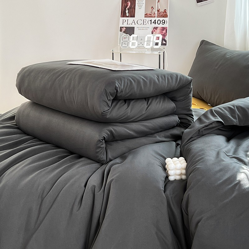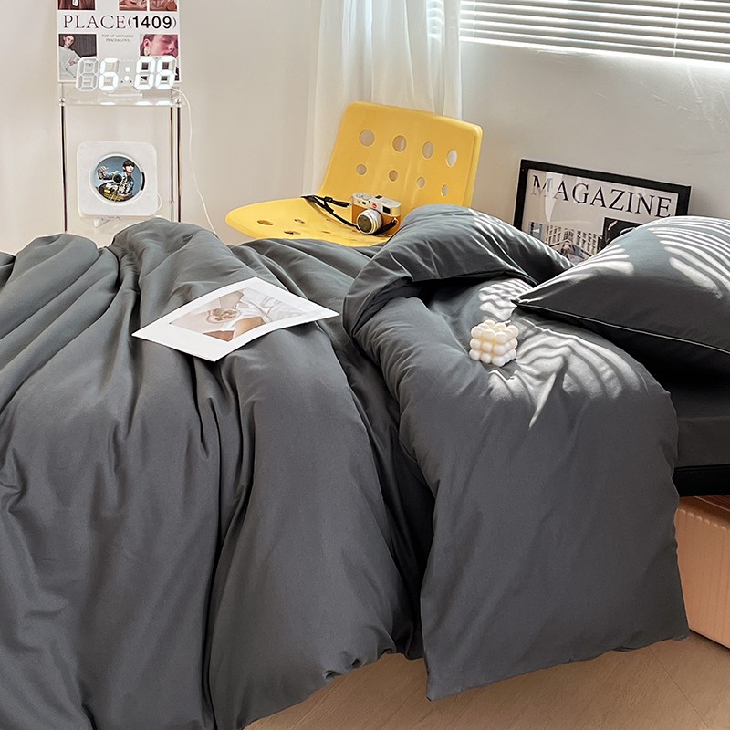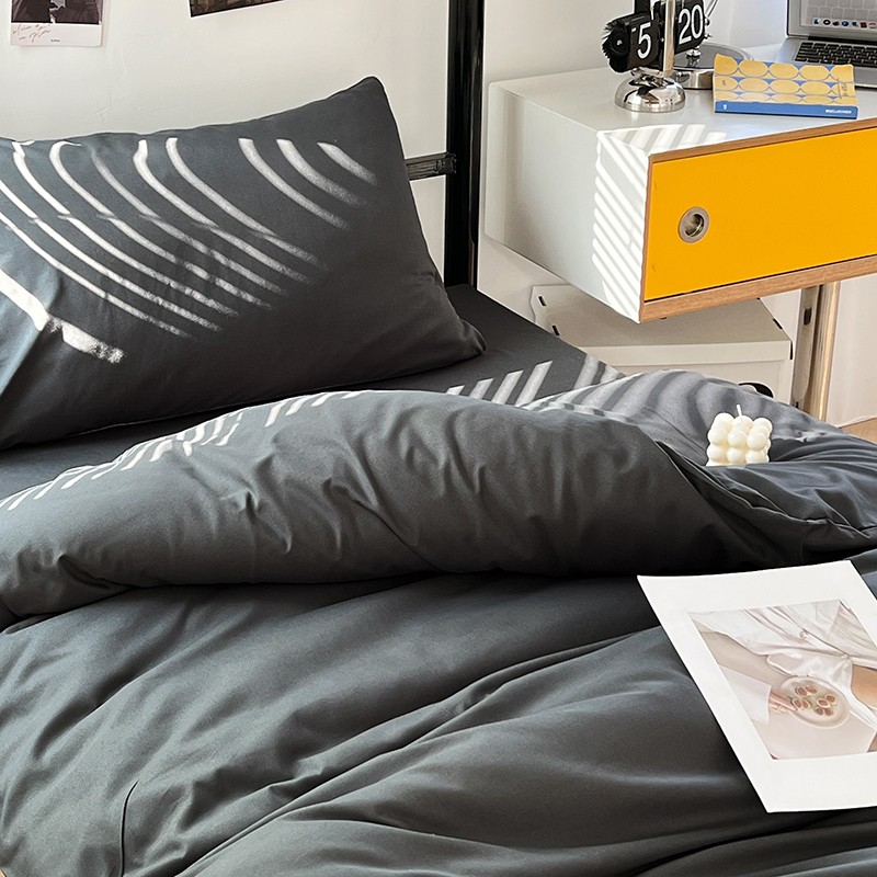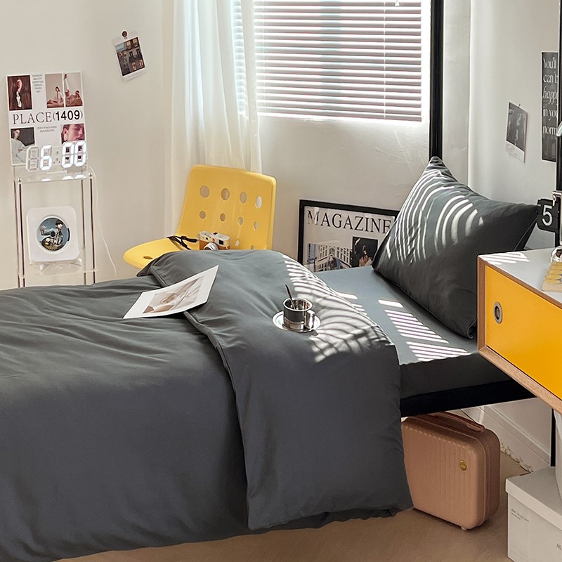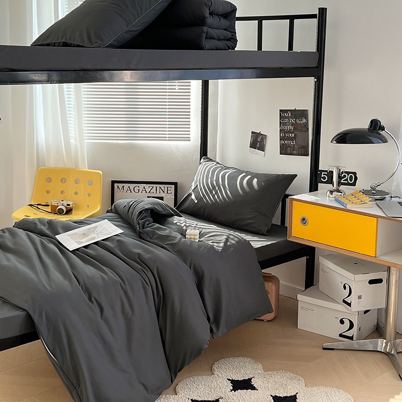 当前位置: 91家纺网 > 商品网购 > 床品套件 > 四件套 > 化纤普通四件套 > 蓝淋家纺 2023新款水洗棉学生宿舍亲肤三件套四件套 深灰