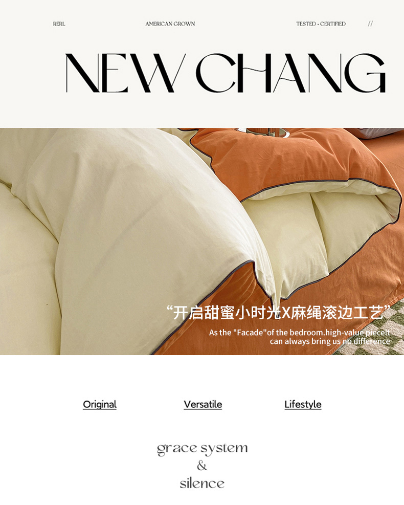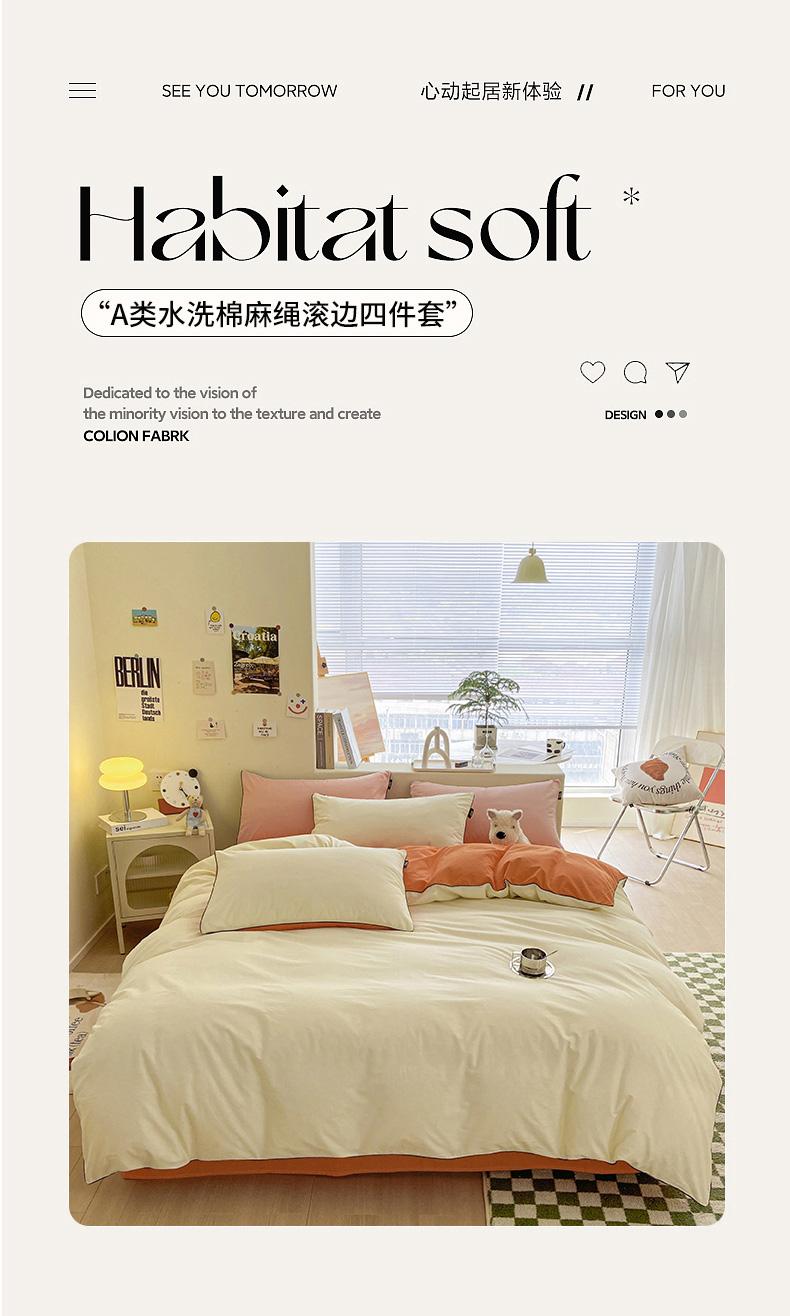 当前位置: 91家纺网 > 商品网购 > 床品套件 > 四件套 > 水洗棉四件套 > 眠帛家居 2023新款A类芝士系列水洗棉麻绳滚边四件套 芝士奶昔白焦糖