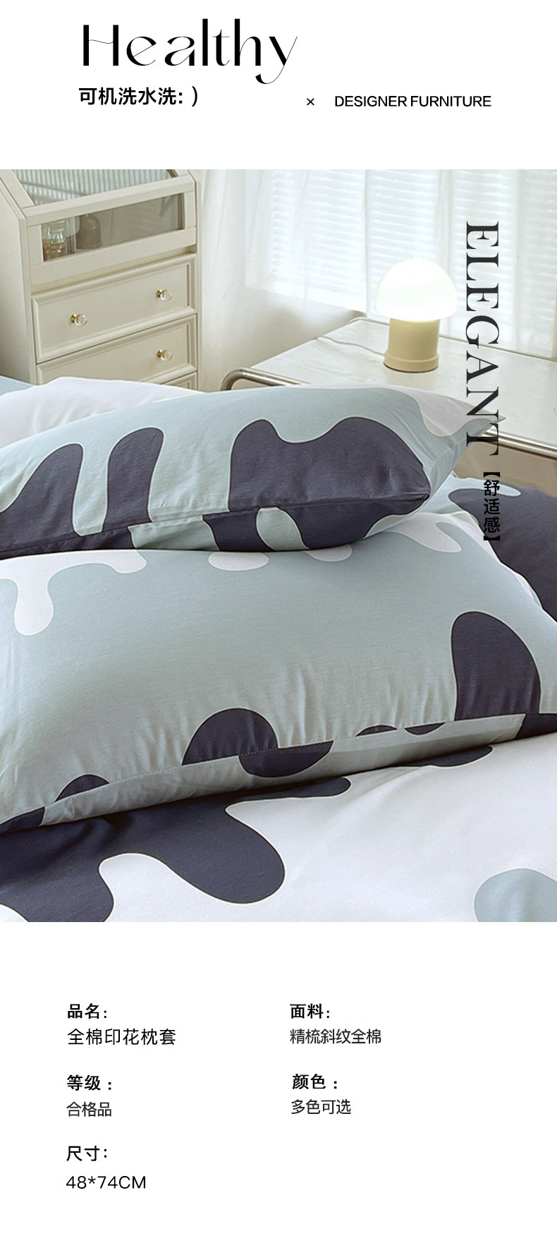 金鑫汇 2023新款喷气全棉枕套一对 奶油蓝