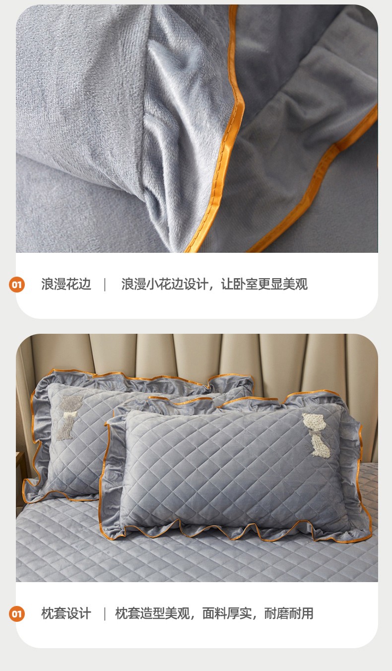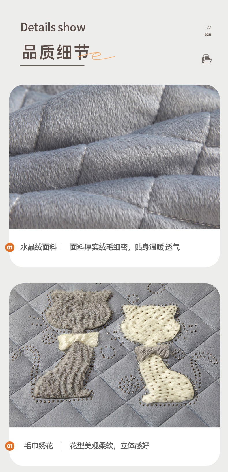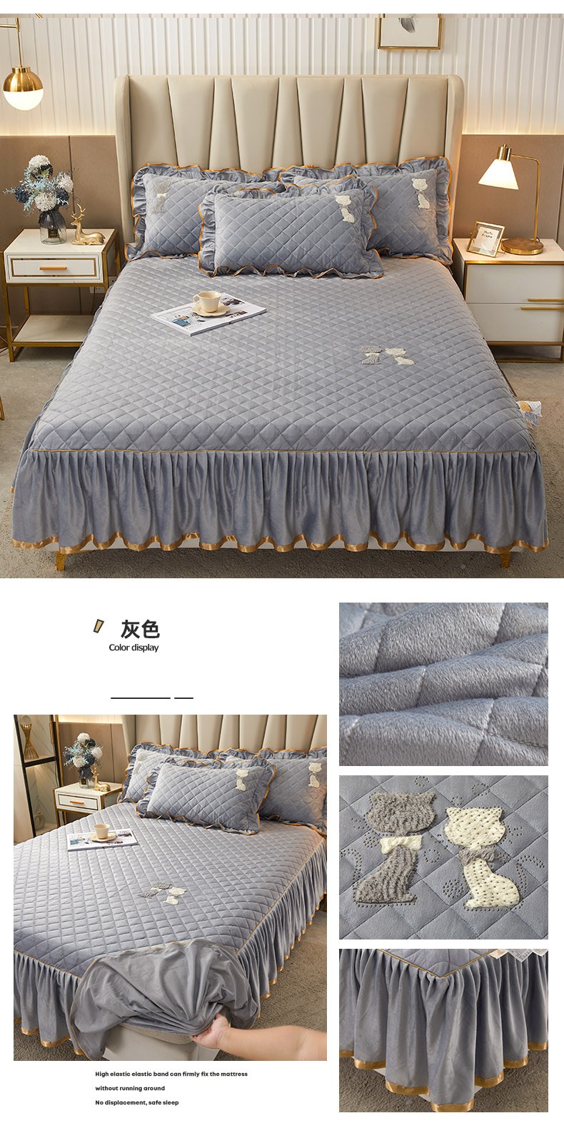 • 91家纺网 家纺一手货源 找家纺 恋尚 2023新款水晶绒夹棉床裙床笠四件套-KT猫系列 灰色