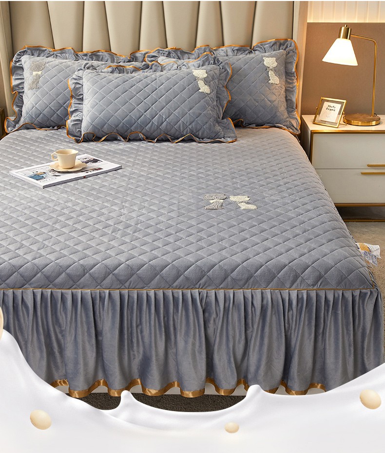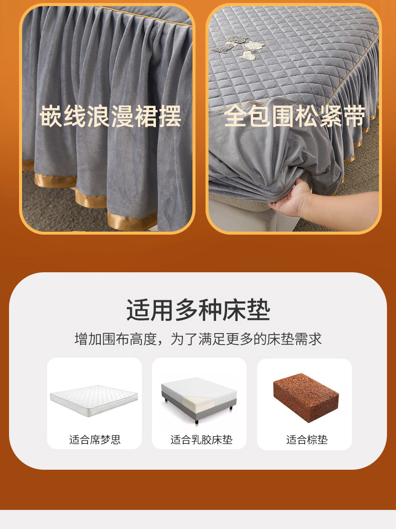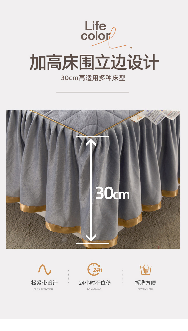 (总)恋尚 2025新款加厚牛奶绒保暖床笠式床裙单品床裙床裙单件-莫奈花园(床裙控价130起),莫奈花园-蜜桃粉,莫奈花园-奶油白,莫奈花园-清新粉,莫奈花园-香芋紫,莫奈花园-椰蓉灰