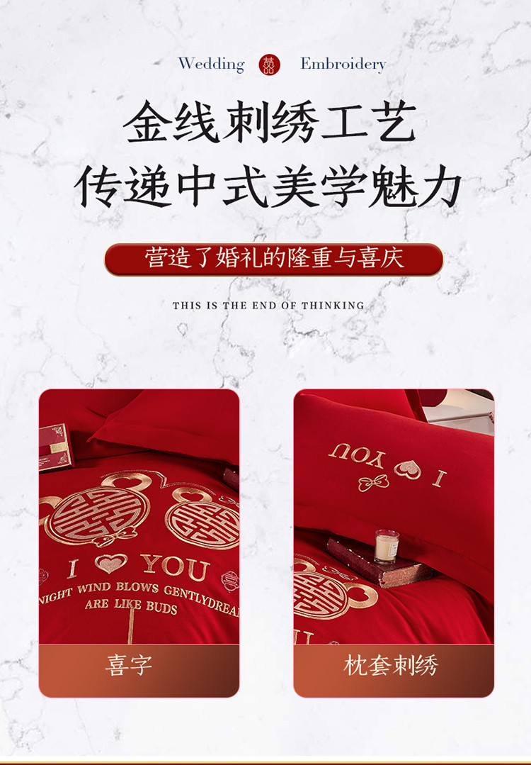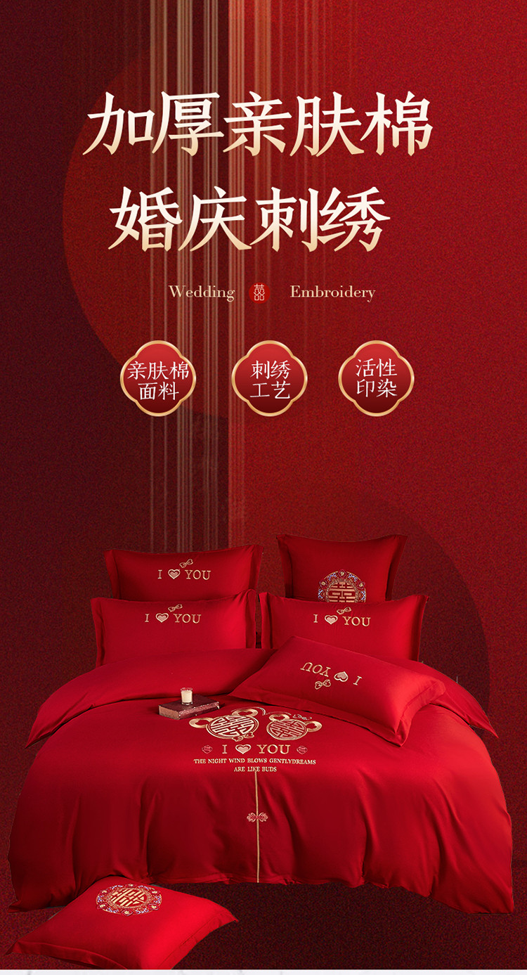 当前位置: 91家纺网 > 商品网购 > 床品套件 > 四件套 > 婚庆四件套 > 玉雅家纺 2025新款亲肤刺绣婚庆四件套 心中有你
