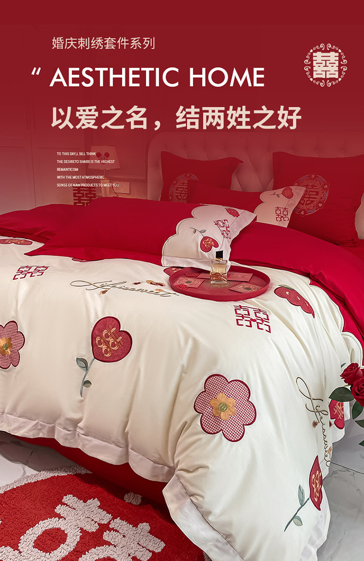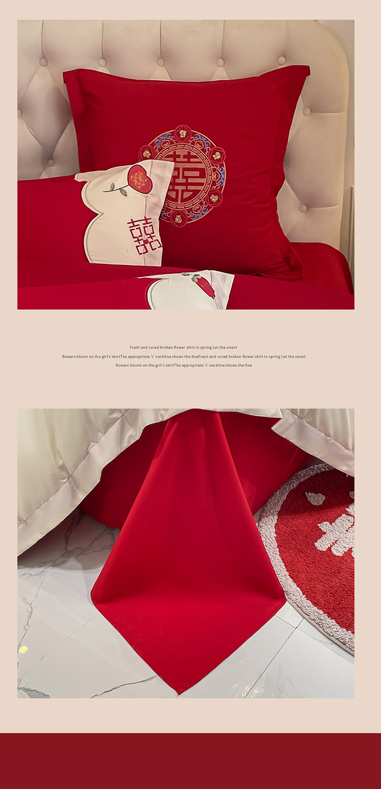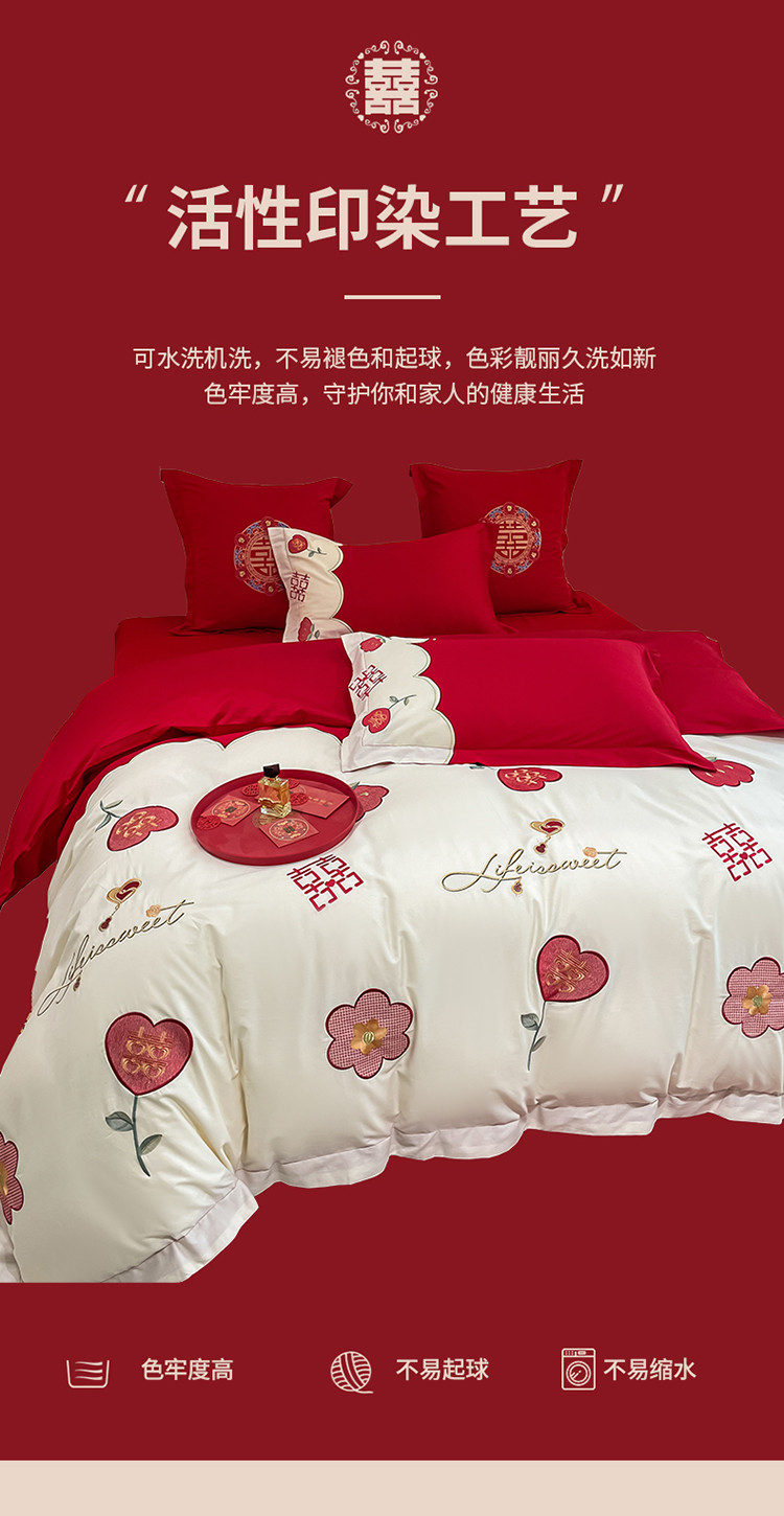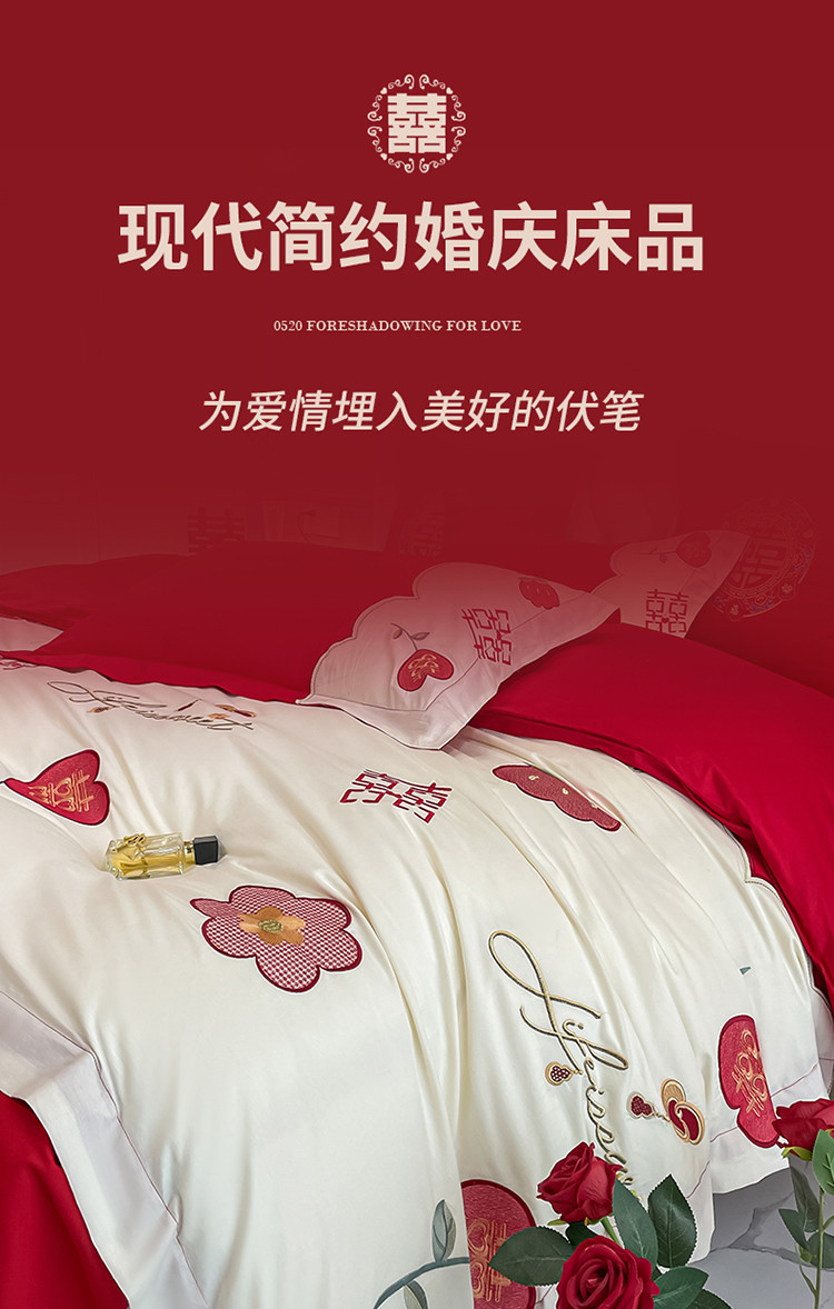 当前位置: 91家纺网 > 商品网购 > 床品套件 > 四件套 > 婚庆四件套 > 玉雅家纺 2025新款亲肤刺绣婚庆四件套 喜盈盈