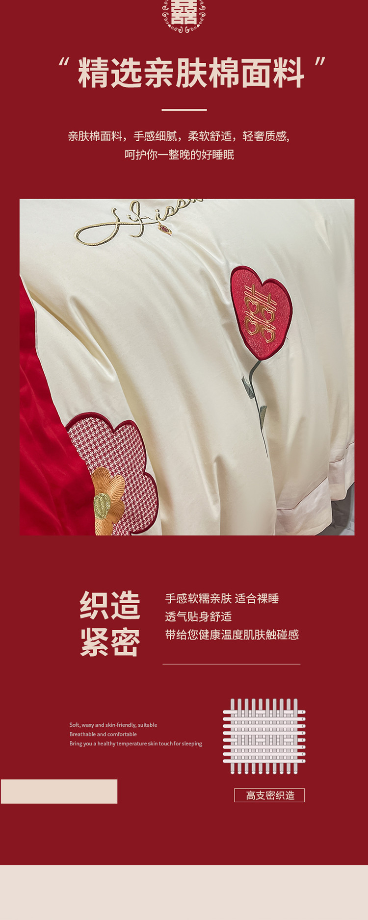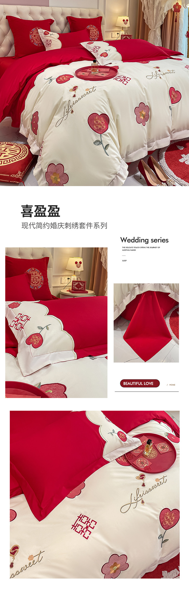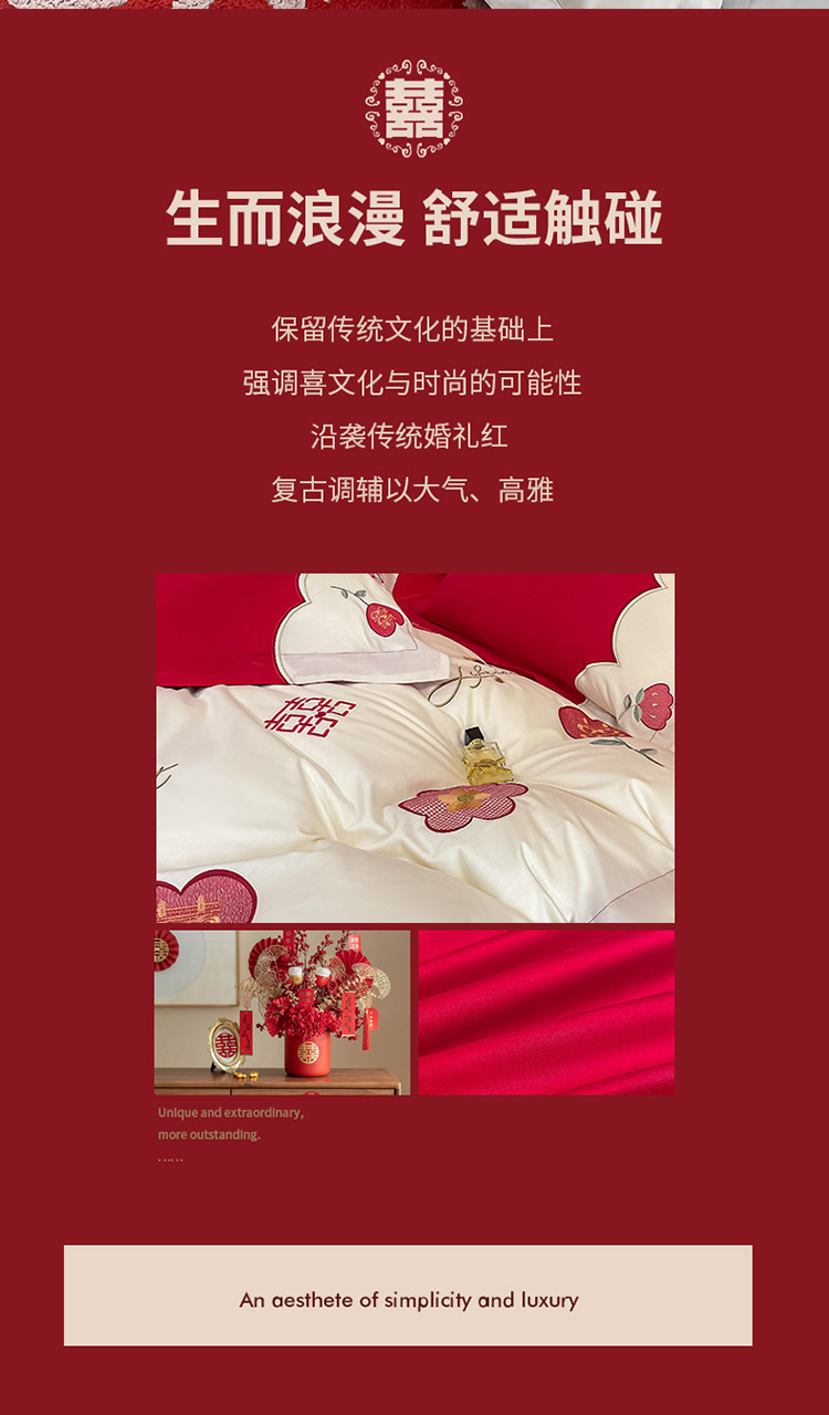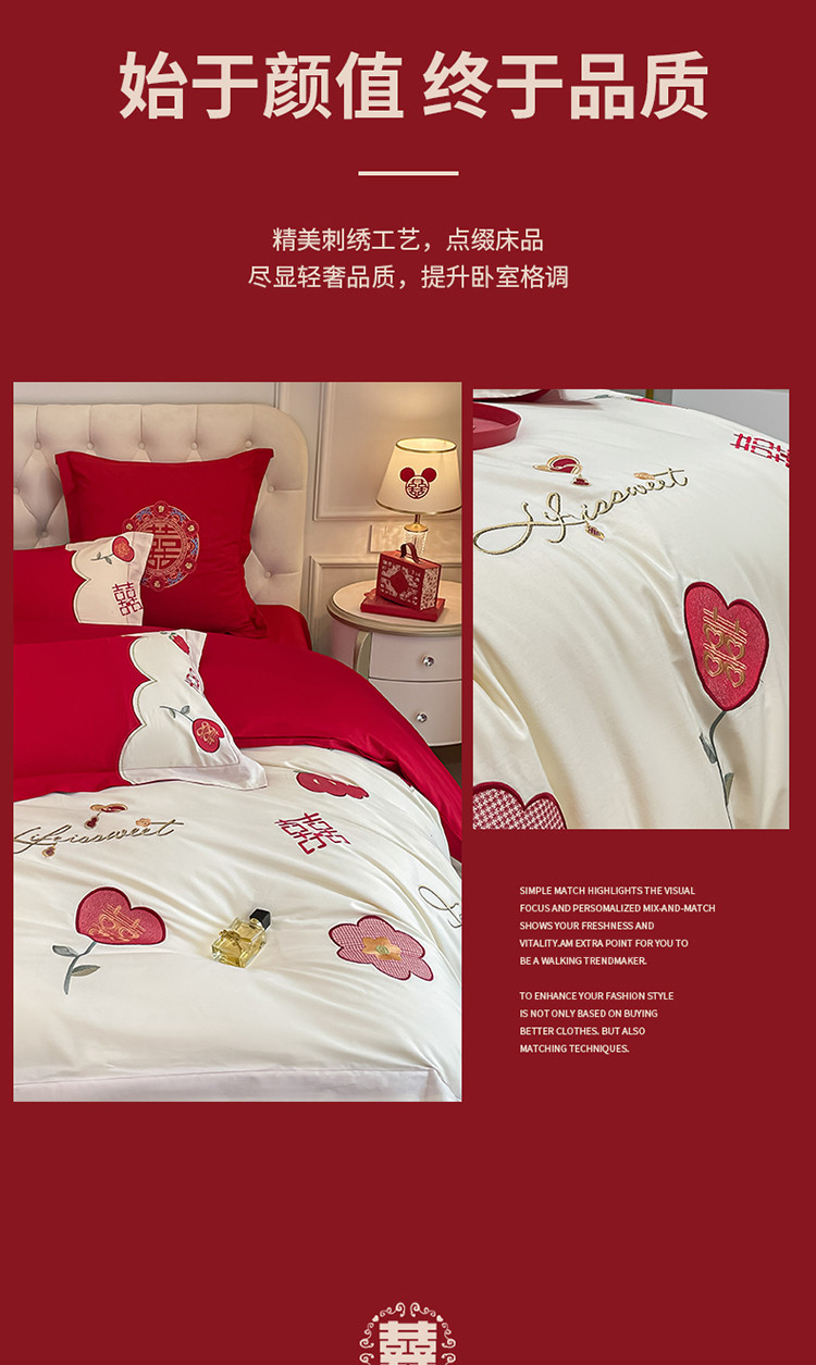 当前位置: 91家纺网 > 商品网购 > 床品套件 > 四件套 > 婚庆四件套 > 玉雅家纺 2025新款亲肤刺绣婚庆四件套 喜盈盈