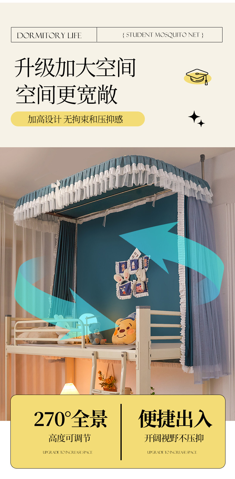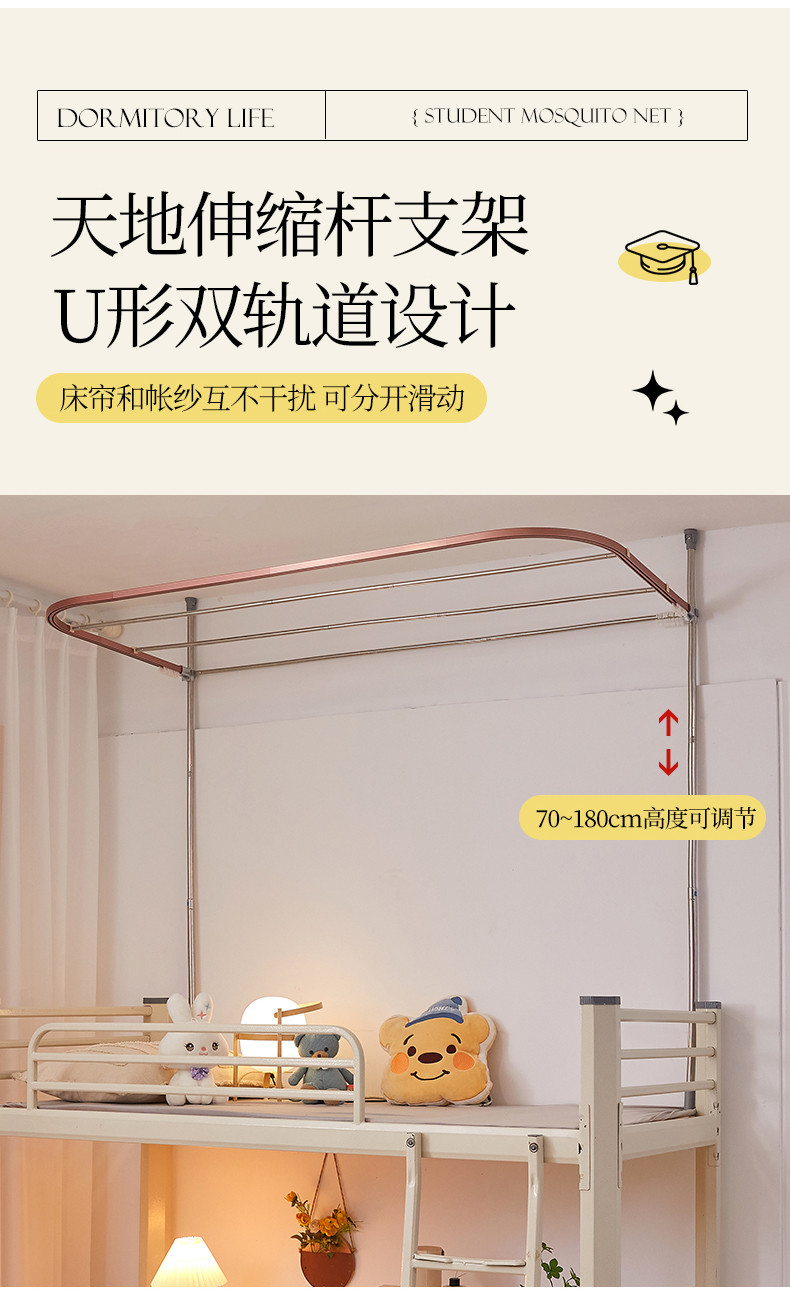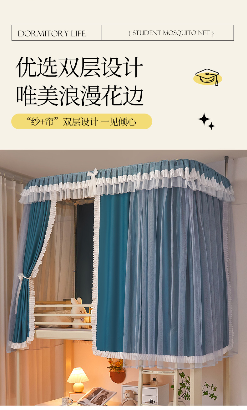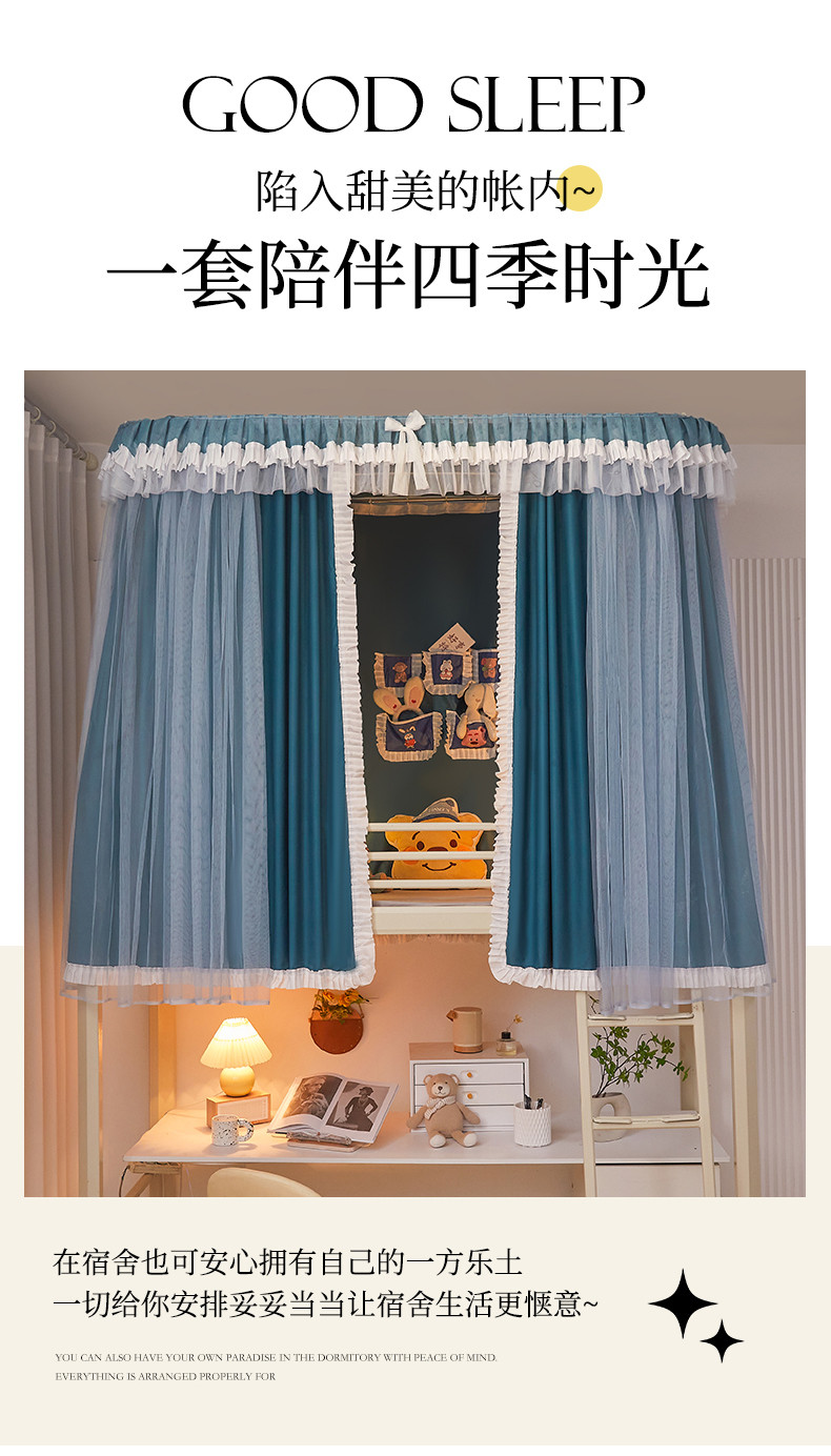 商品名称:迪凡保罗 2025新款2323天地杆铝合金导轨涂银强遮光学生蚊帐 海岛蓝