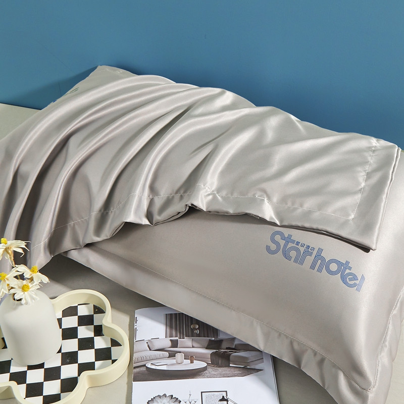 蓝冰家纺 2023新款水洗真丝印花宽边枕套 灰