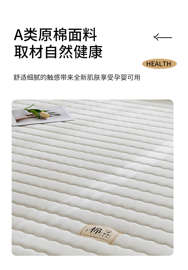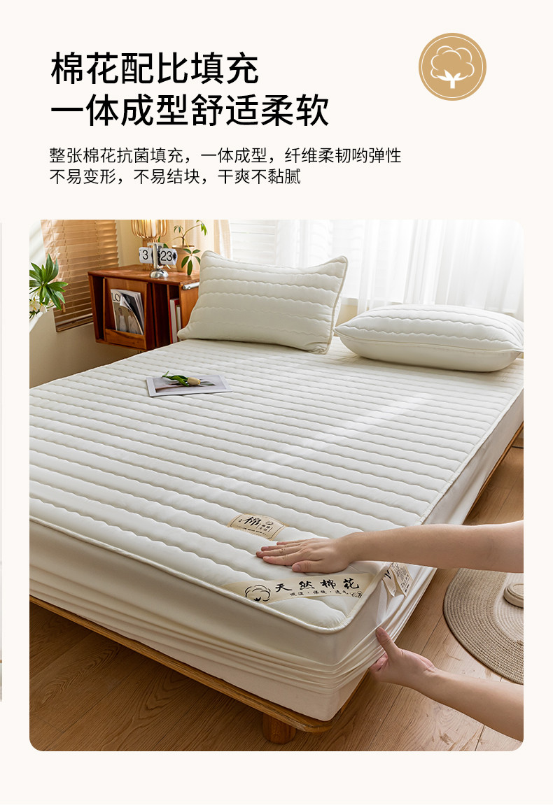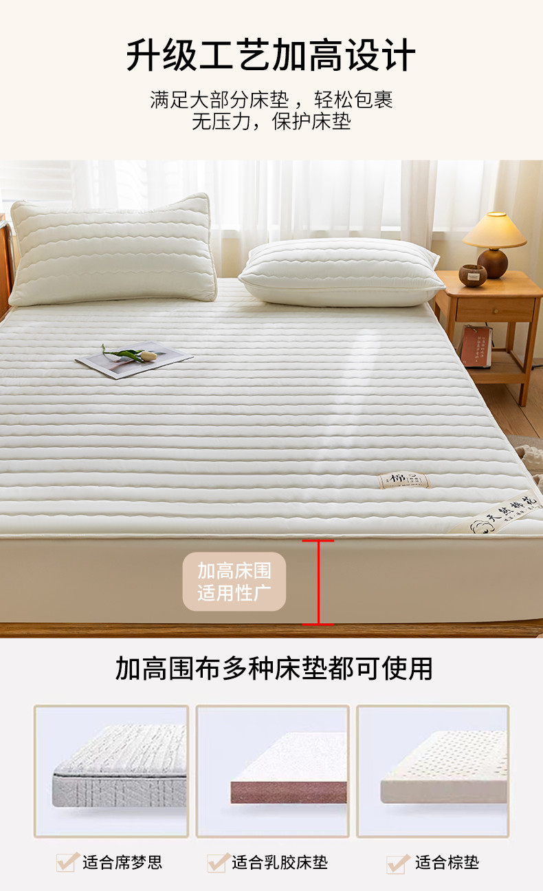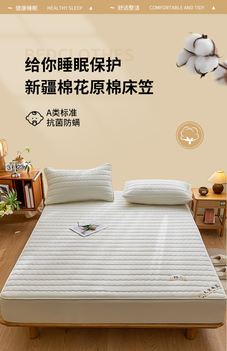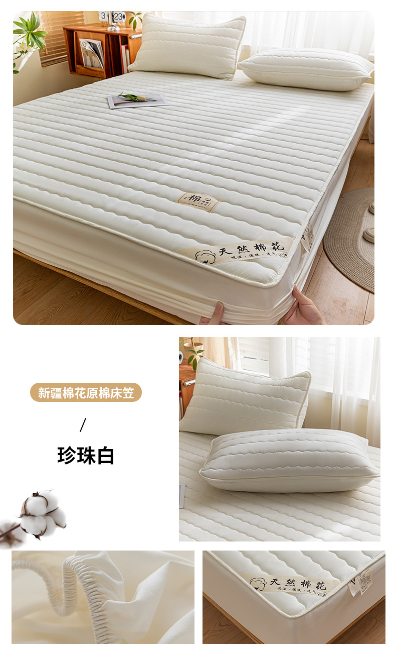 鑫钰 2023新款亲肤棉新疆棉花原棉床笠床罩床垫保护垫 珍珠白