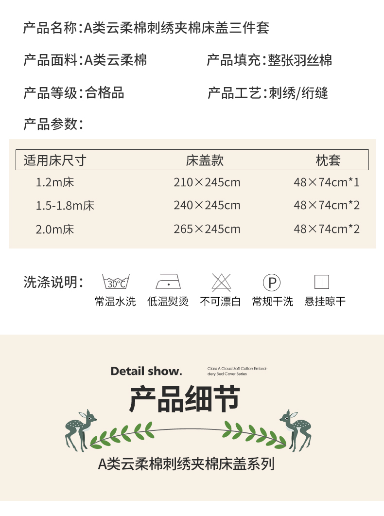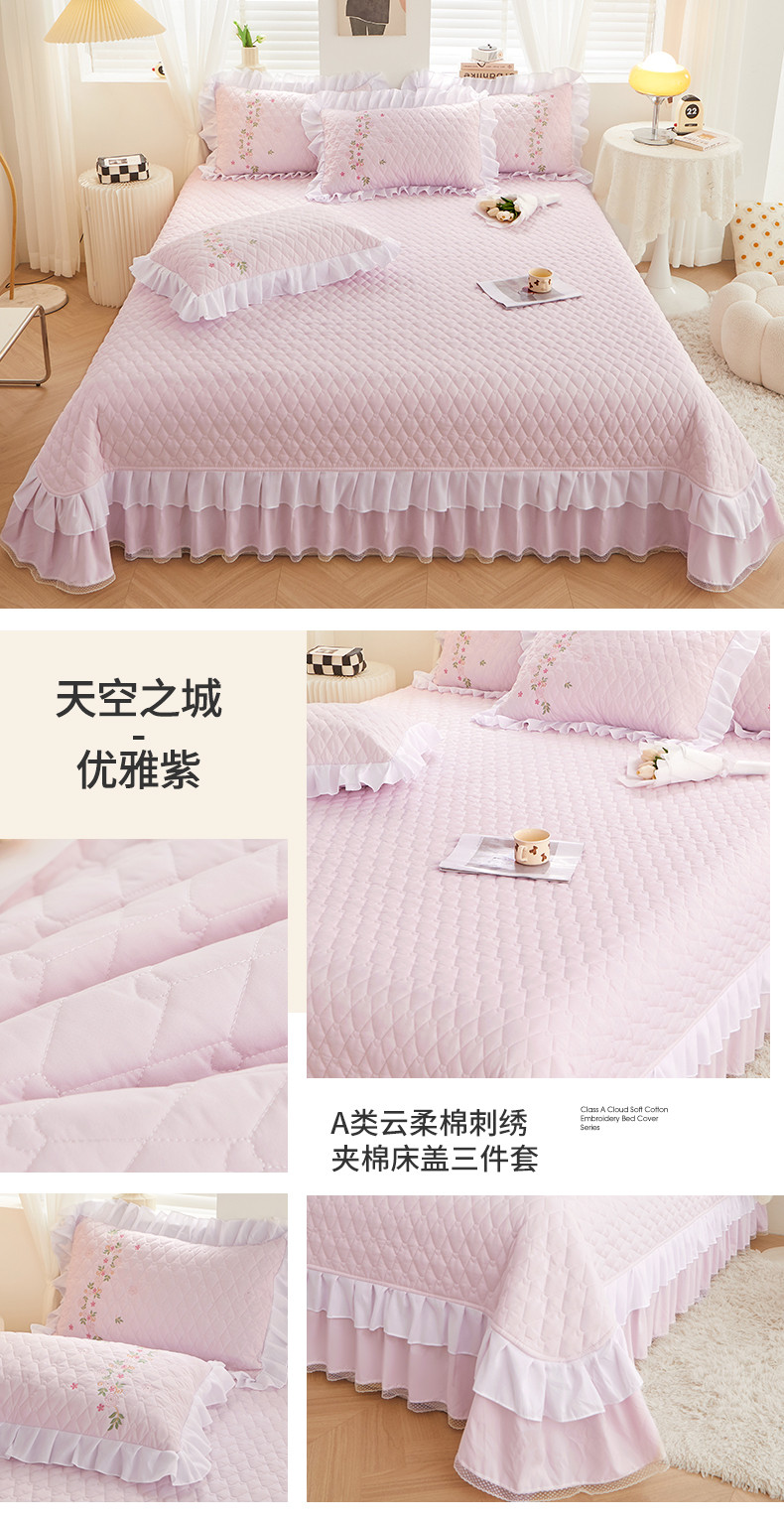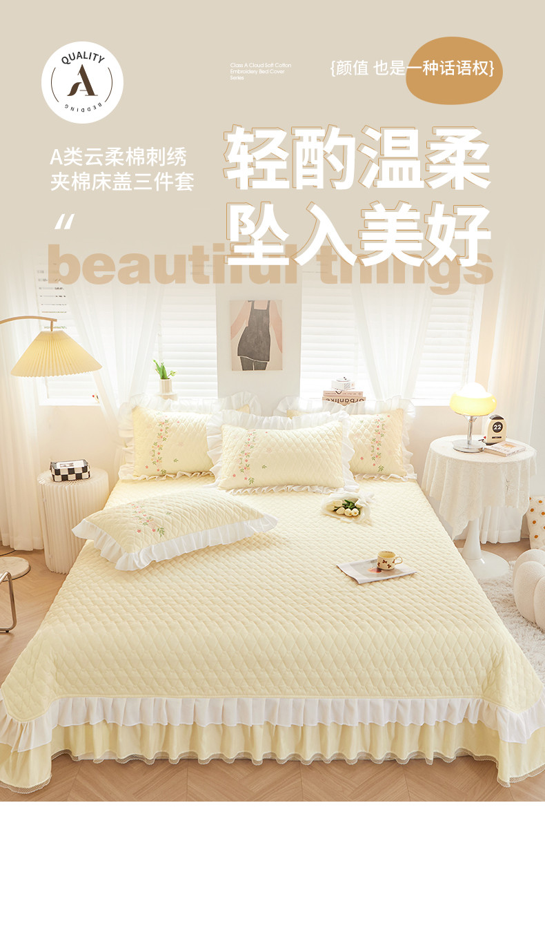 (总)宜凡 2023新款A类云柔棉床盖夹棉三件套