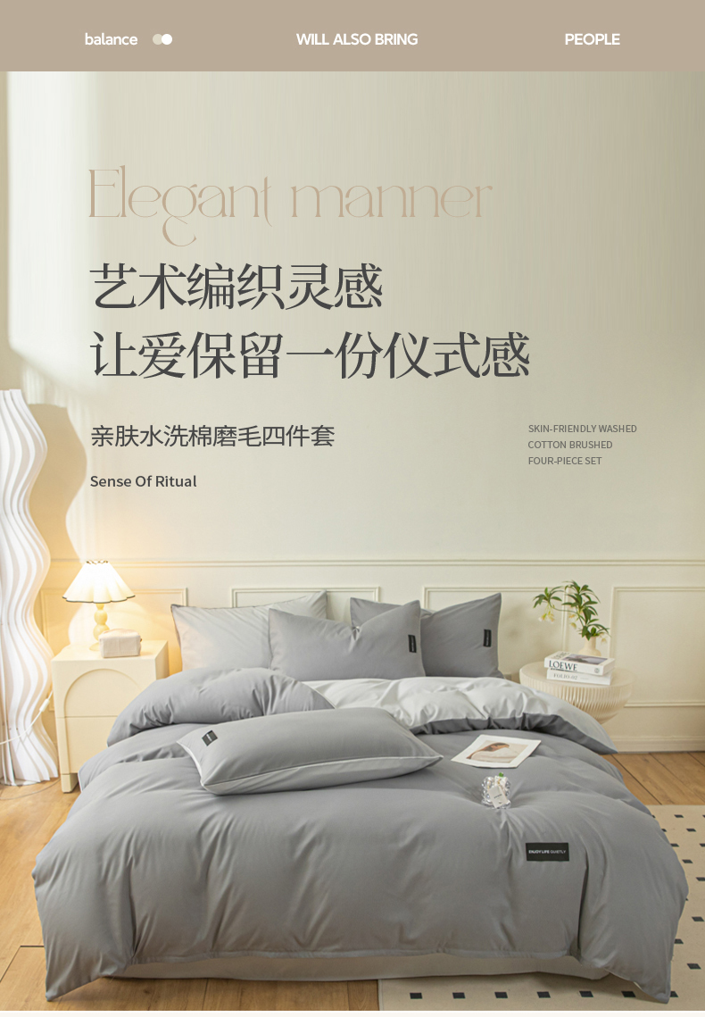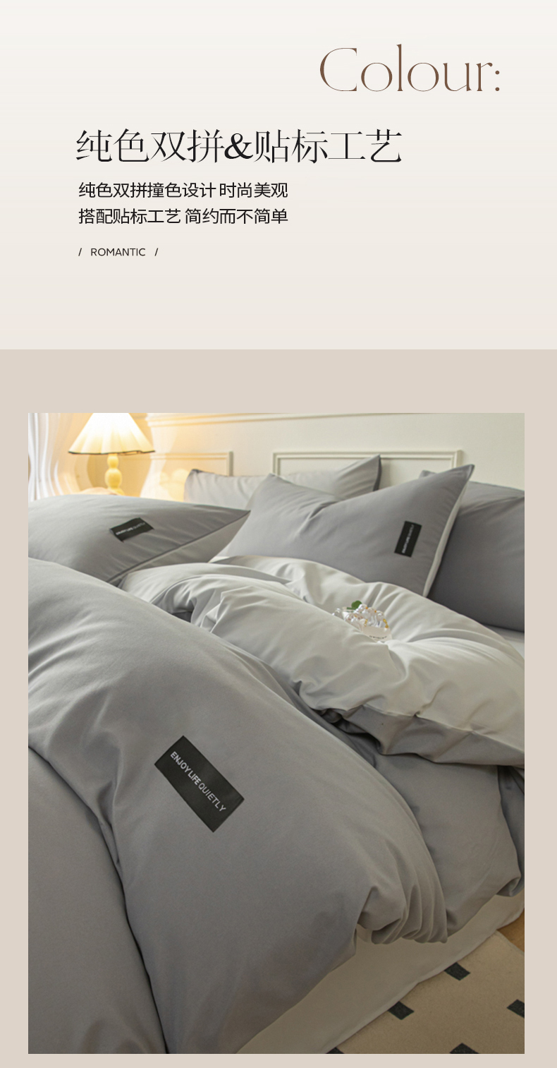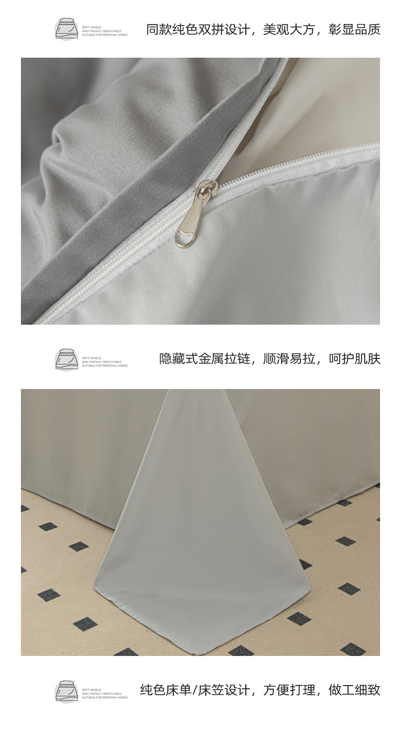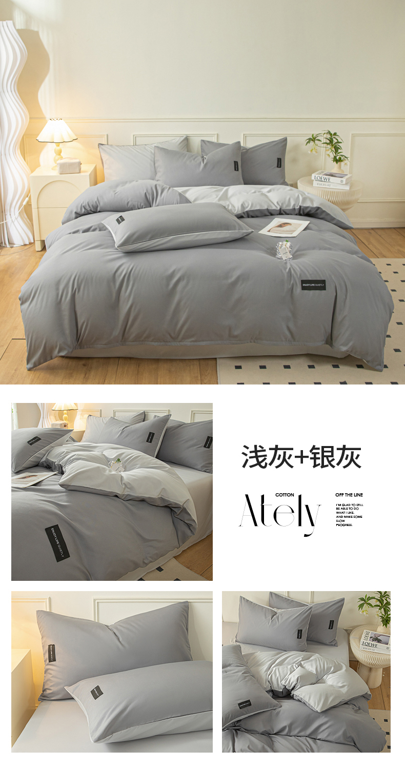 当前位置: 91家纺网 > 商品网购 > 床品套件 > 四件套 > 水洗棉四件套 > 欣晴家纺 2023新品亲肤水洗棉磨毛织标系列三件套四件套 浅灰+银灰