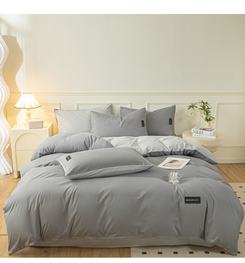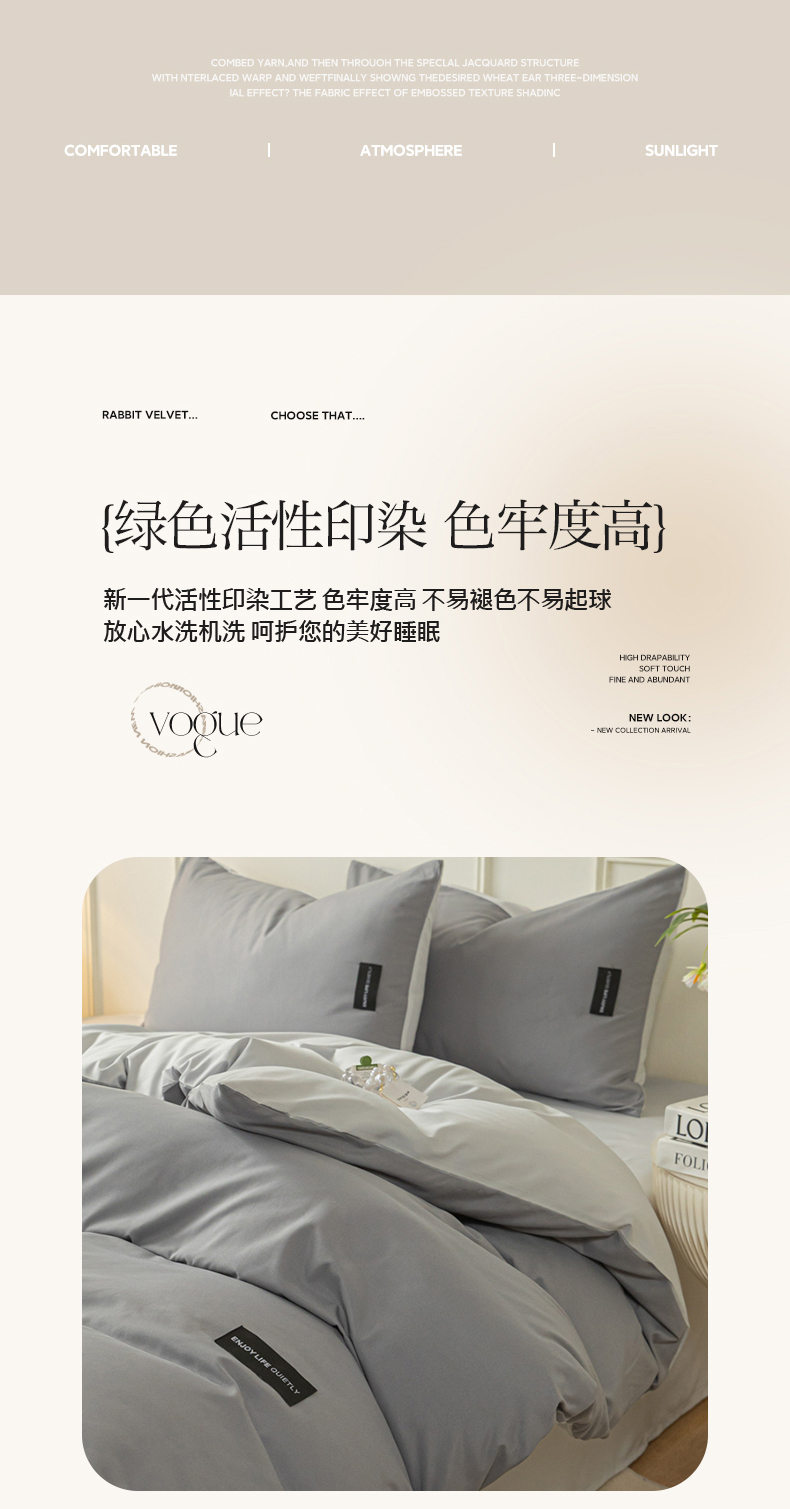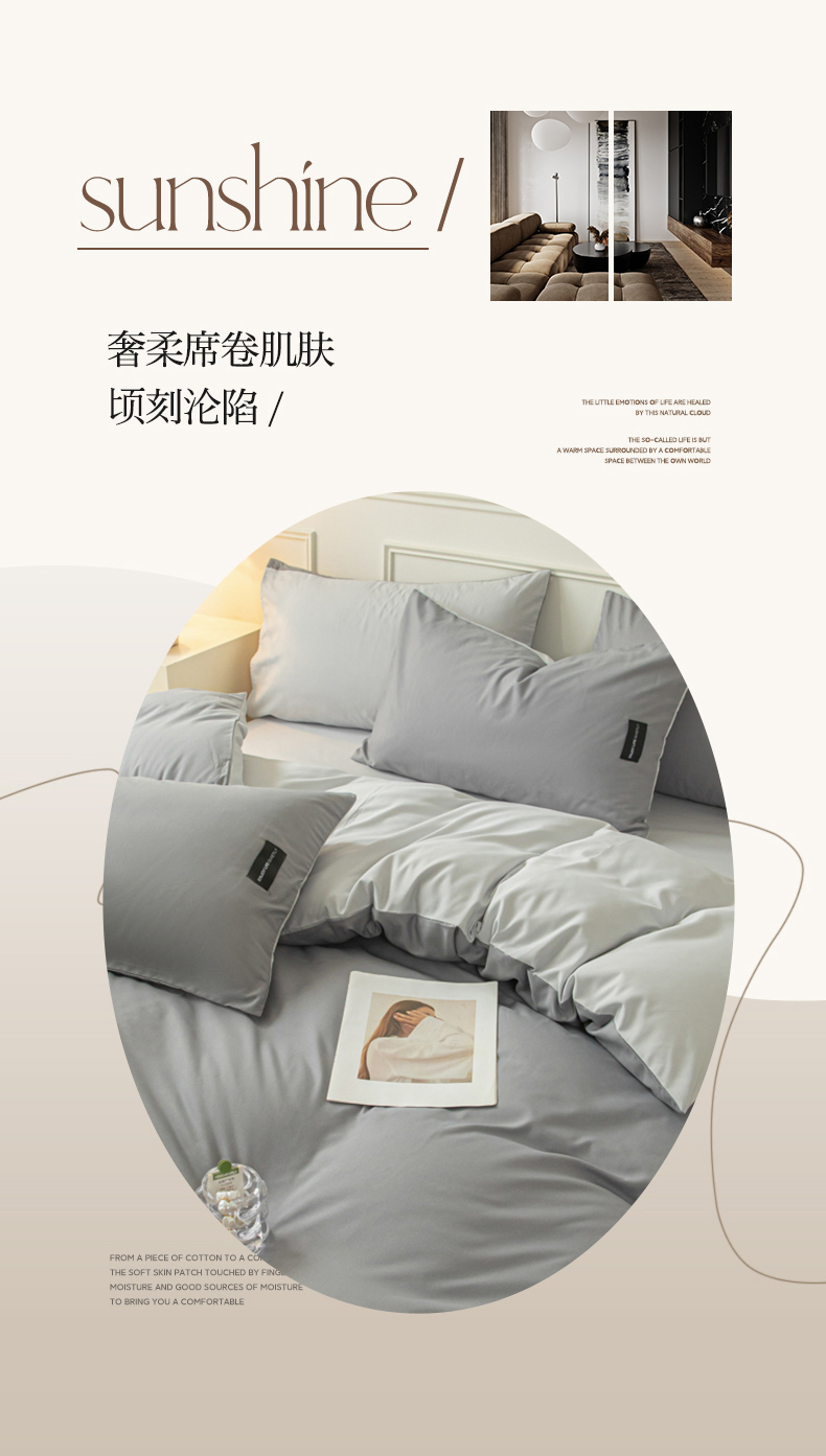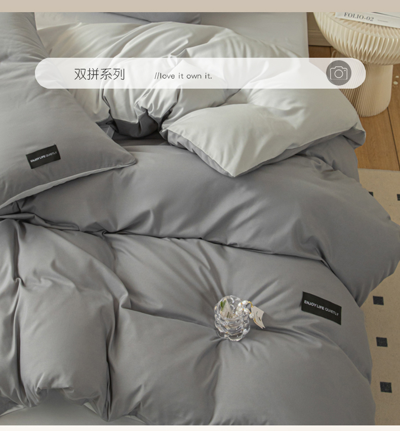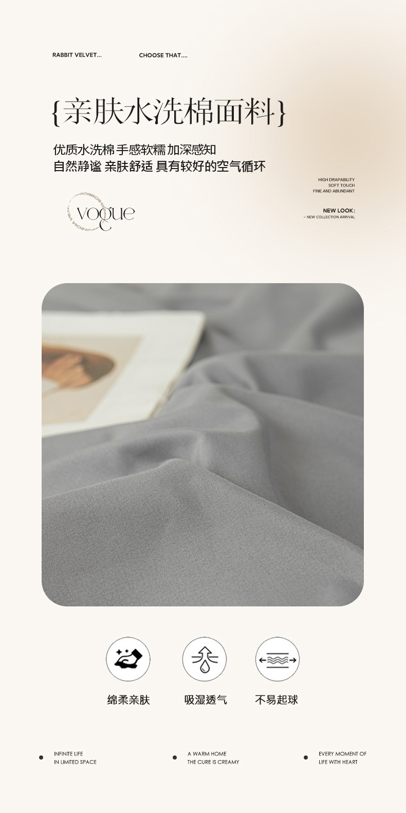 当前位置: 91家纺网 > 商品网购 > 床品套件 > 四件套 > 水洗棉四件套 > 欣晴家纺 2023新品亲肤水洗棉磨毛织标系列三件套四件套 浅灰+银灰