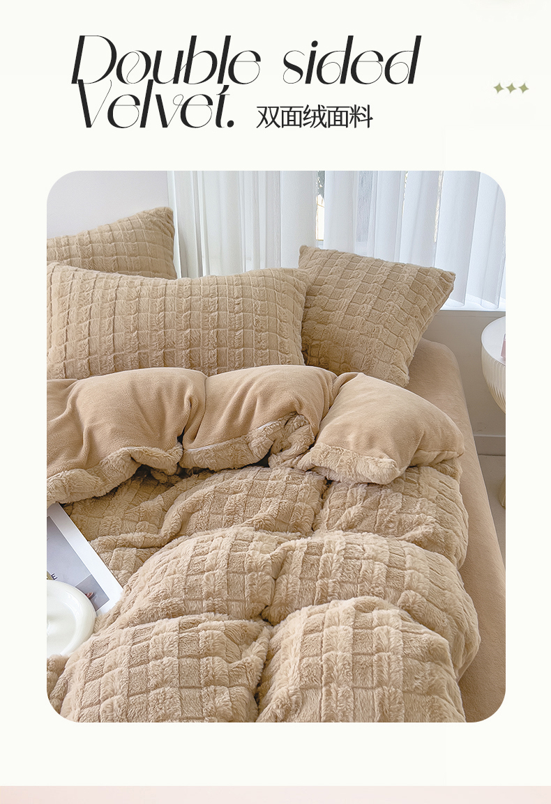 当前位置: 91家纺网 > 商品网购 > 床品套件 > 四件套 > 磨绒四件套 > 丝幔 2025新款活性AB面牛奶绒小獭兔绒四件套 小獭兔卡其