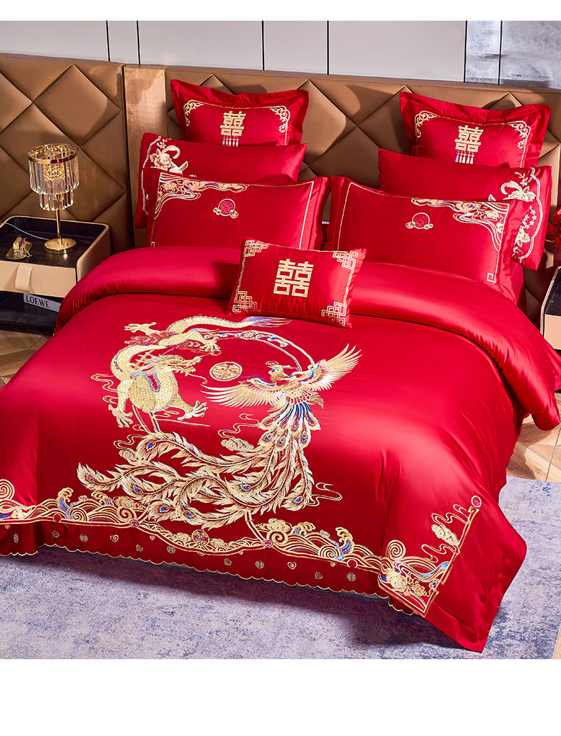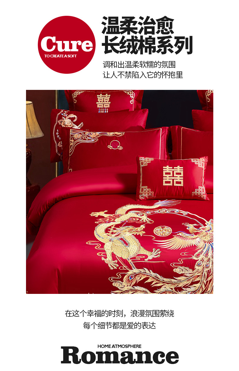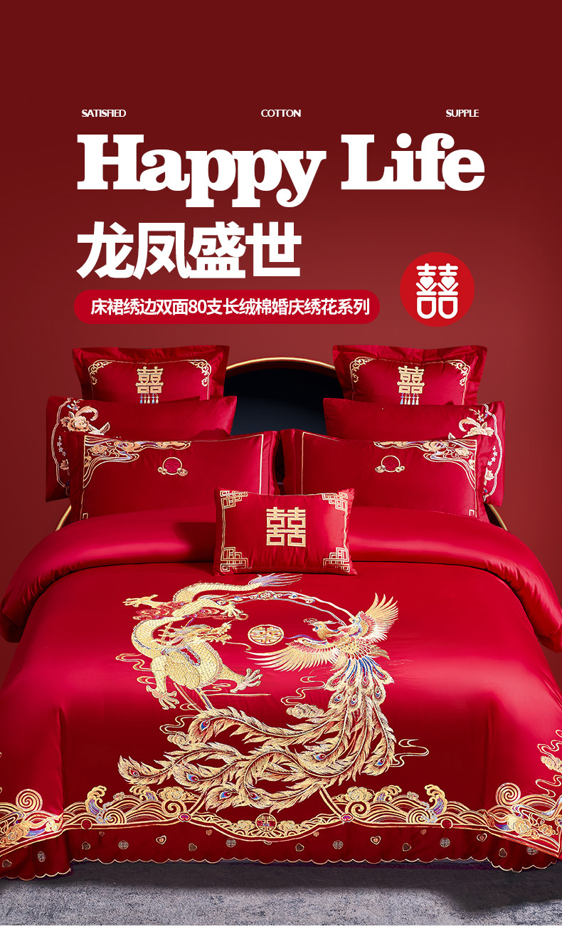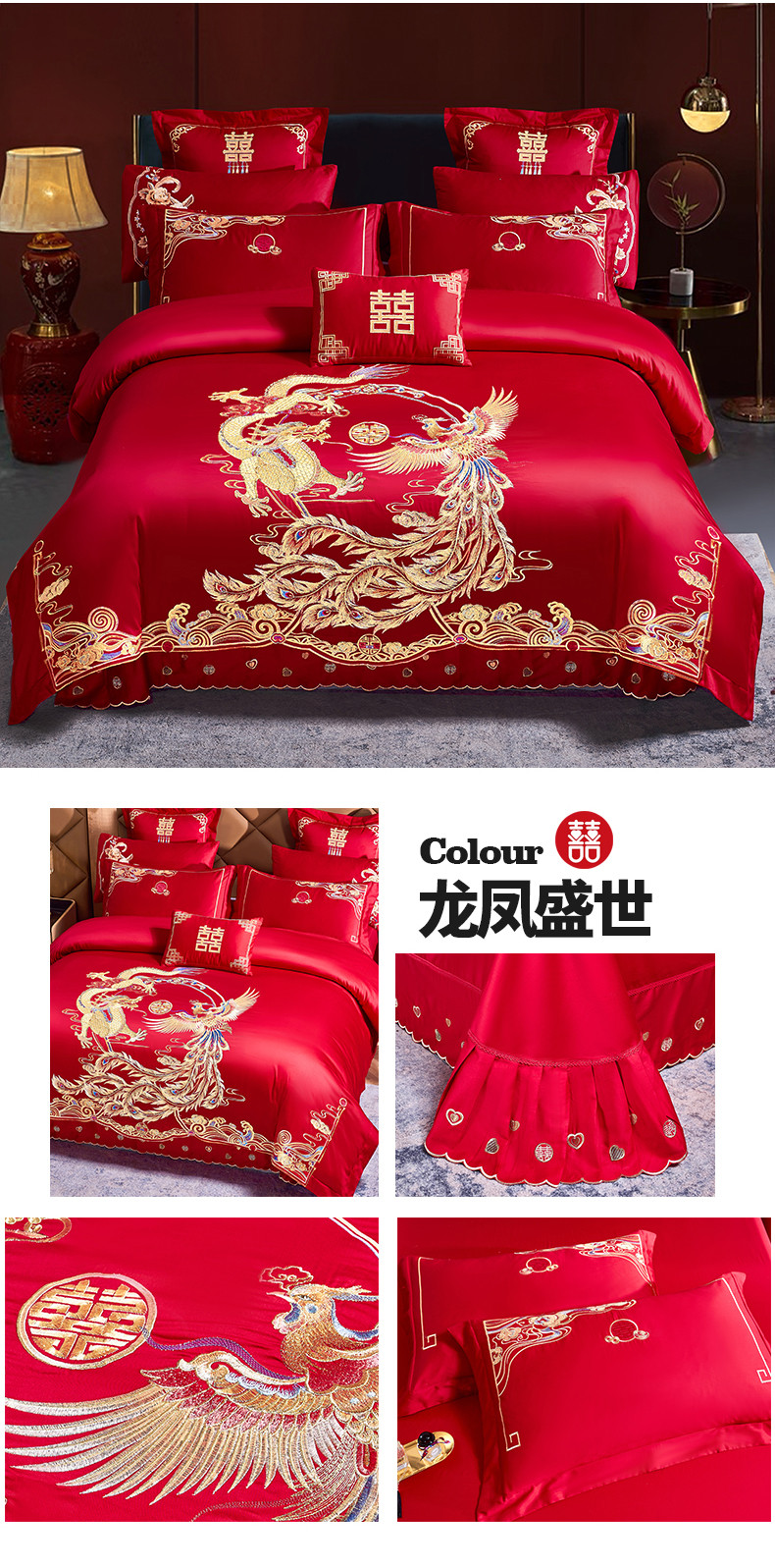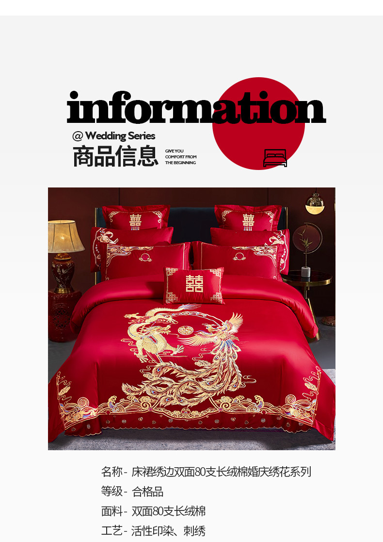 当前位置: 91家纺网 > 商品网购 > 床品套件 > 四件套 > 婚庆四件套 > 千禧 2023新款床裙绣边双面长绒棉婚庆绣花系列四件套 龙凤盛世