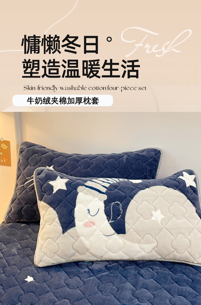 商品名称:梦舒羽 2025新款冬季牛奶绒夹棉加厚加绒亲肤柔软枕芯套 晚安