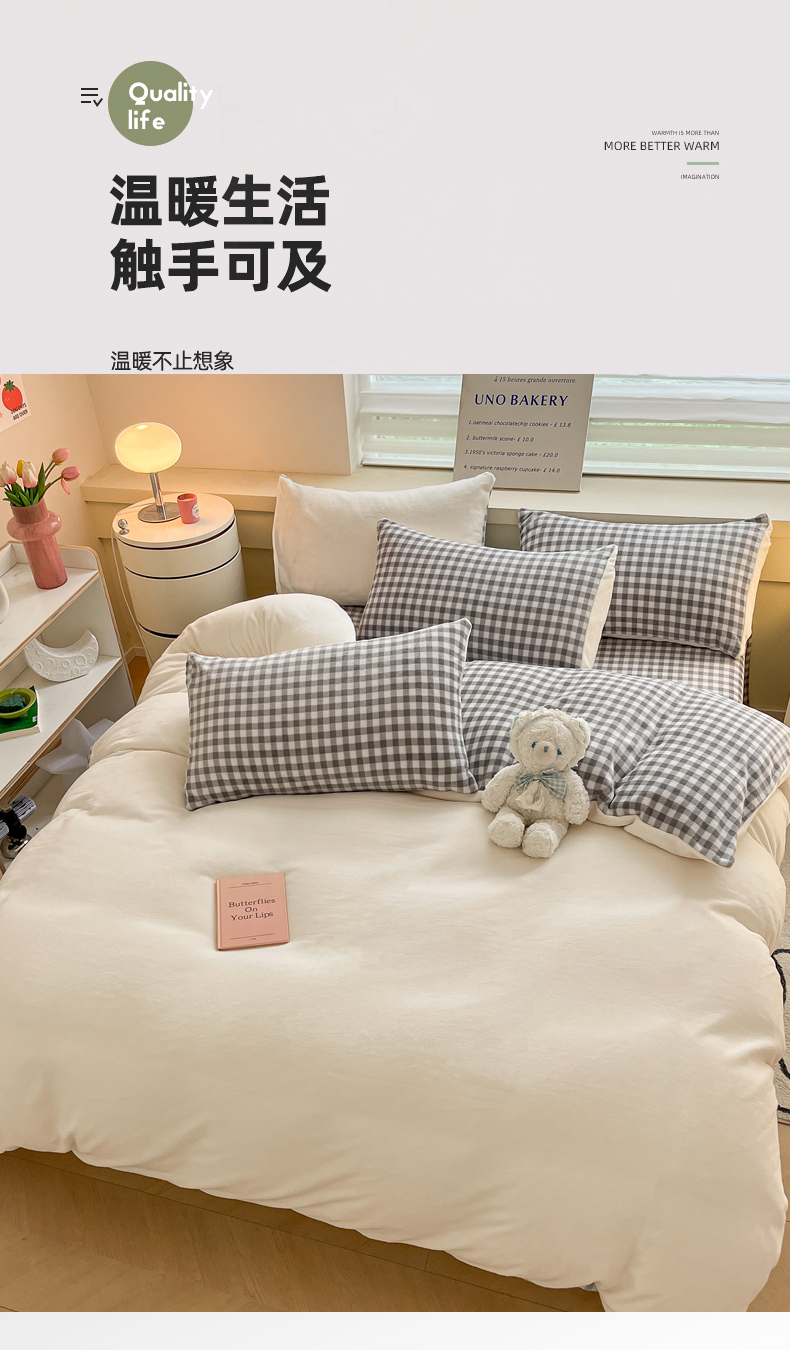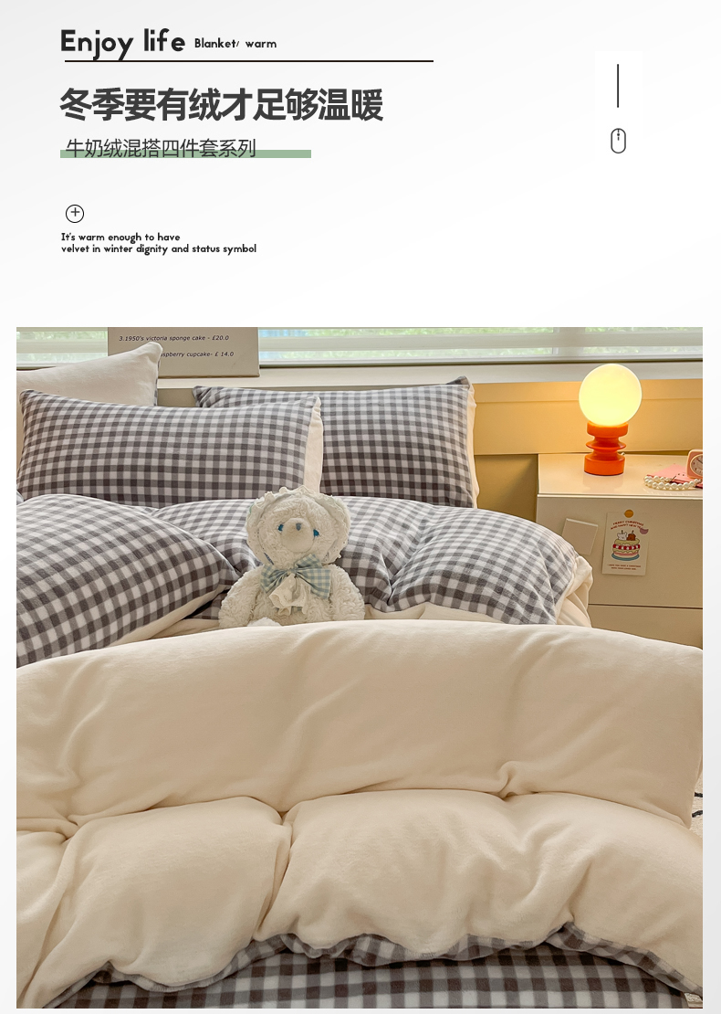 当前位置: 91家纺网 > 商品网购 > 床品套件 > 四件套 > 牛奶绒四件套 > 三朵家纺 2023新款牛奶绒混搭系列四件套 米白+黑白格