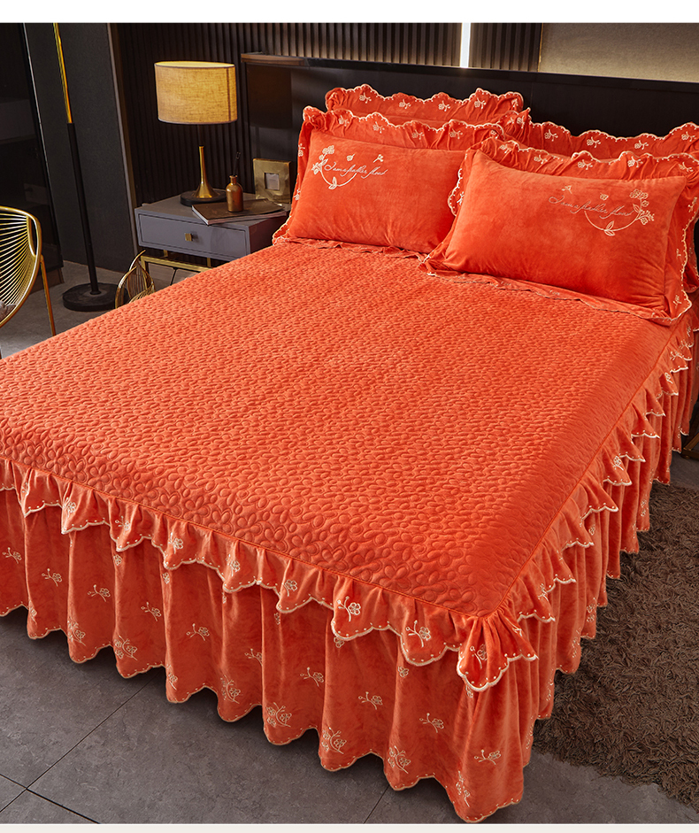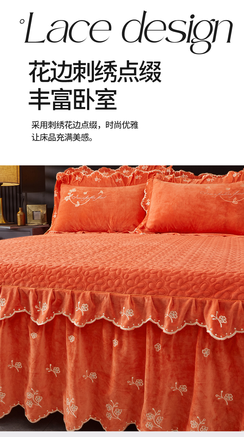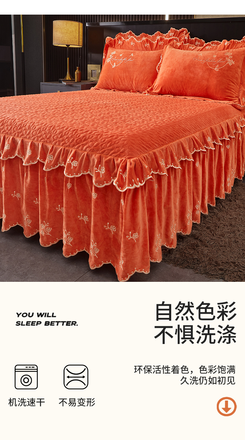 (总)恒爱 2022秋冬水晶绒翩翩花舞夹棉床裙四件套,大红色,豆沙红,橄榄绿,公主粉,桔色,咖啡色,孔雀绿,拉菲红,罗兰紫,玫红色,美人玉,米白色,米驼色,抹茶绿,浅灰色,紫色