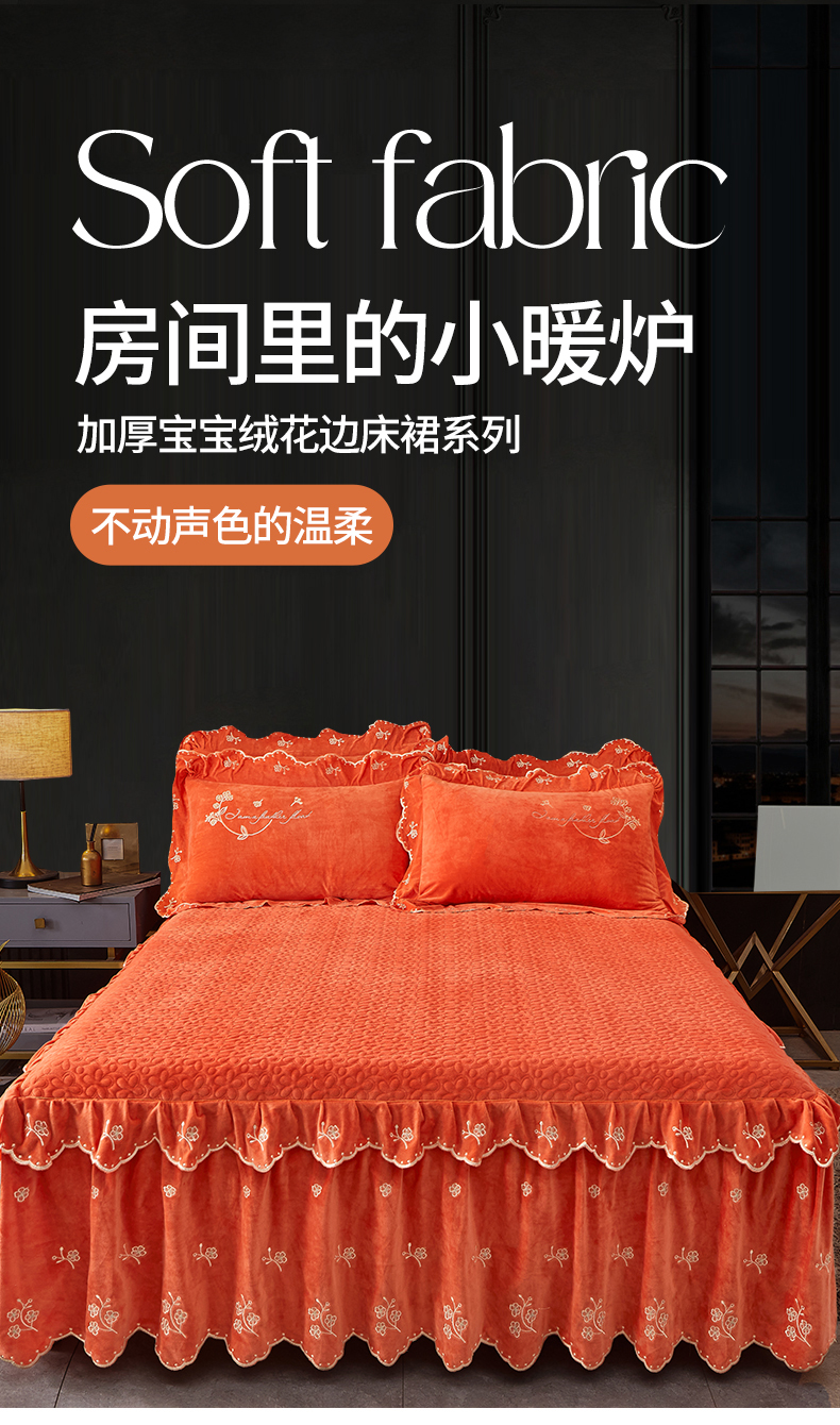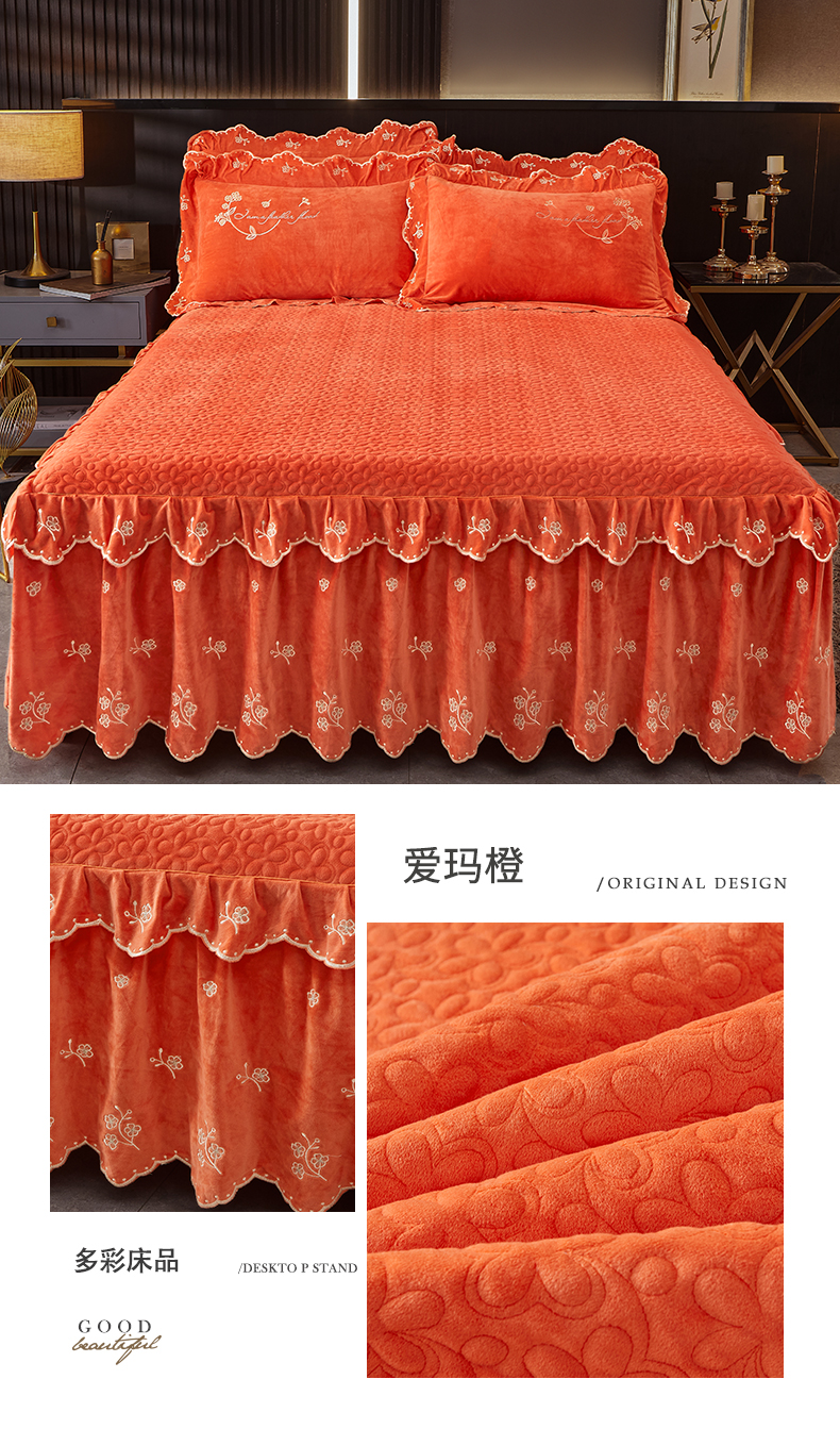 (总)恒爱 2022新款秋冬轻奢宝宝绒刺绣单床裙,爱玛橙,宾利蓝,豆沙红,橄榄绿,高级灰,酒红,梦想粉,浅灰蓝,温馨粉,喜庆红,香妃粉,香芋紫