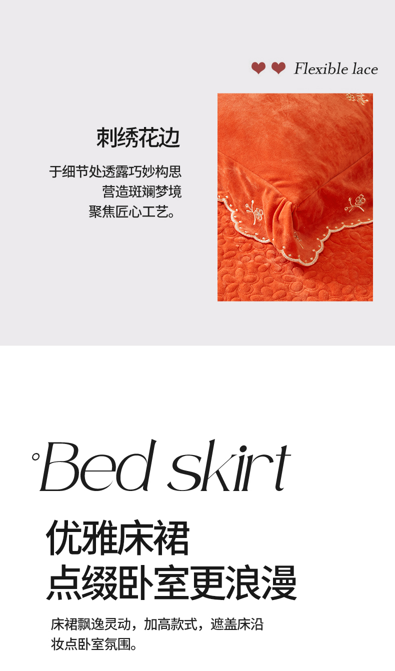 商品名称:2023 恒爱家纺 花好月圆宝宝绒单床裙 爱玛橙