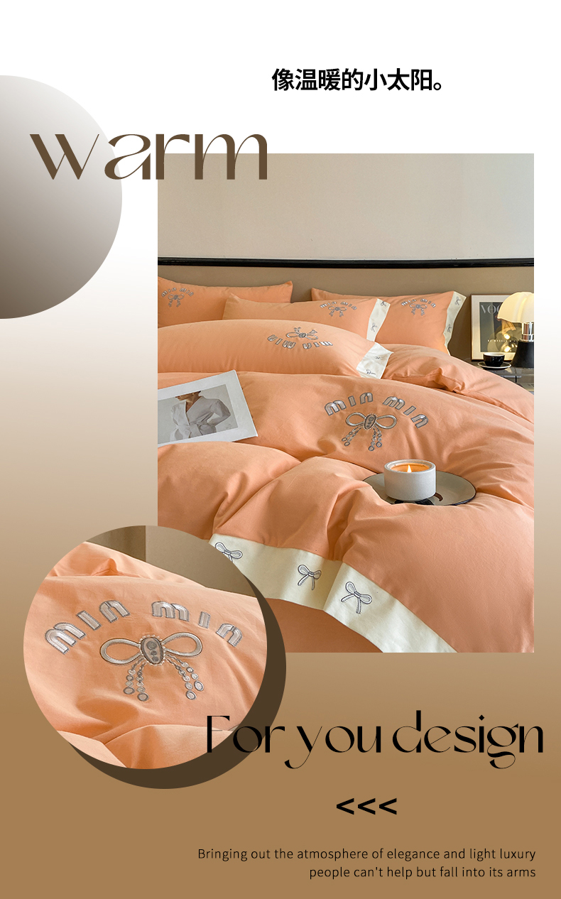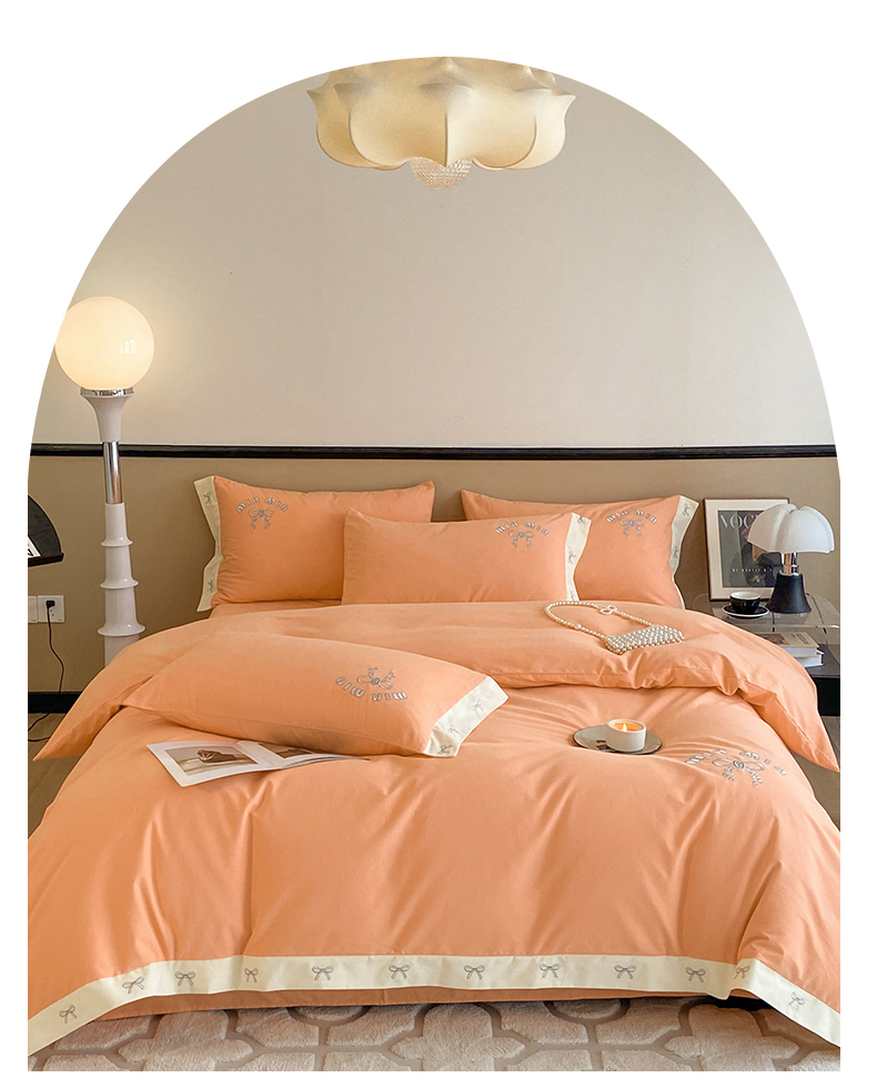 商品名称:拼社家纺 全棉加厚磨毛四件套-minmin 杏橙色