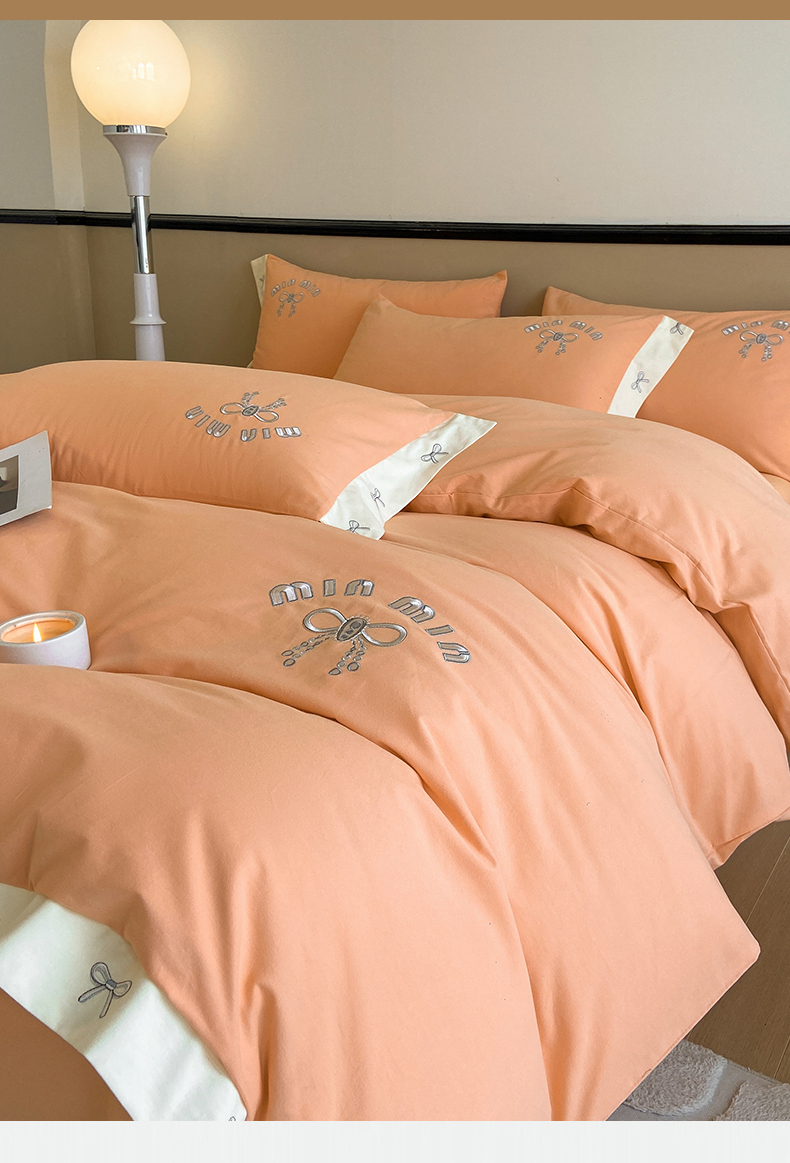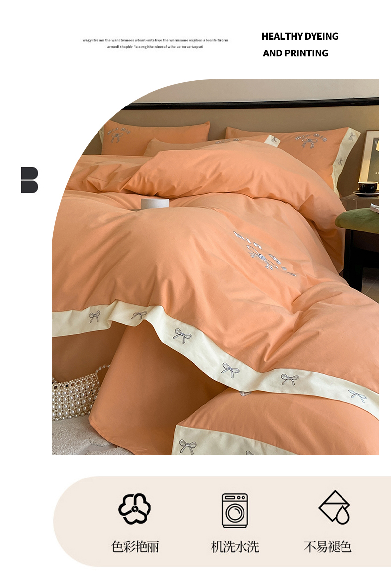 (总)拼社家纺 2025新款母婴及全棉水洗棉刺绣四件套纯棉床上用品,艾玛绿+卡其,繁星蓝+卡其,繁星蓝+玫瑰粉,红豆沙+雅灰,迷雾灰+玫瑰粉,蜜粉+雅灰,奶油白+卡其,奶油白+香橙,牛仔蓝+浅蓝,香橙+雅灰