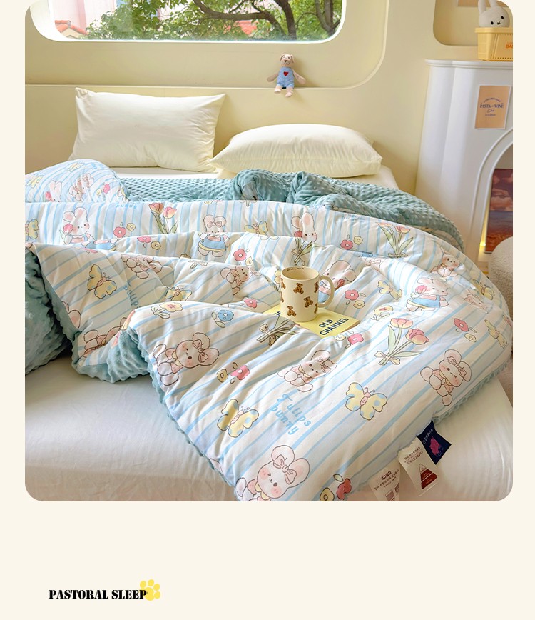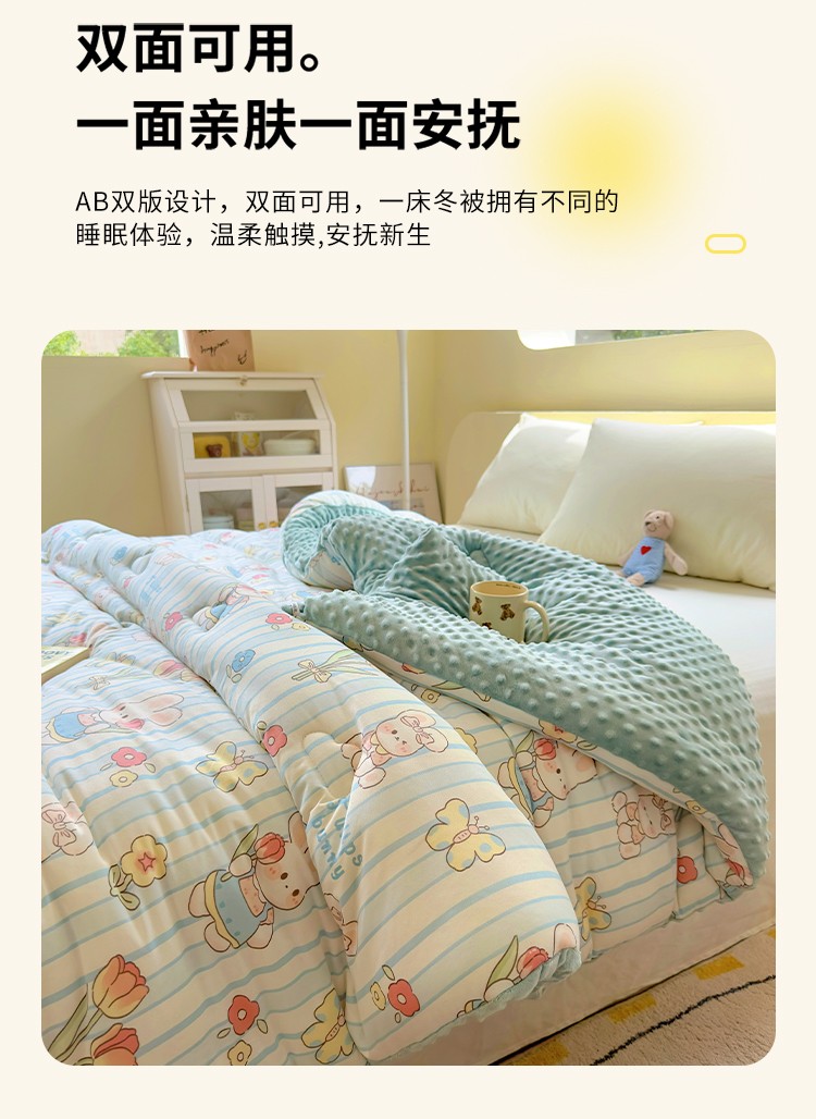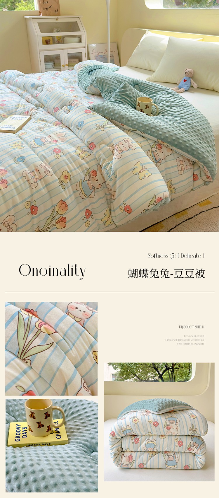 • 91家纺网 家纺一手货源 找家纺 木堇家居 2023新款秋冬针织豆豆大豆四季被 蝴蝶兔兔-豆豆被