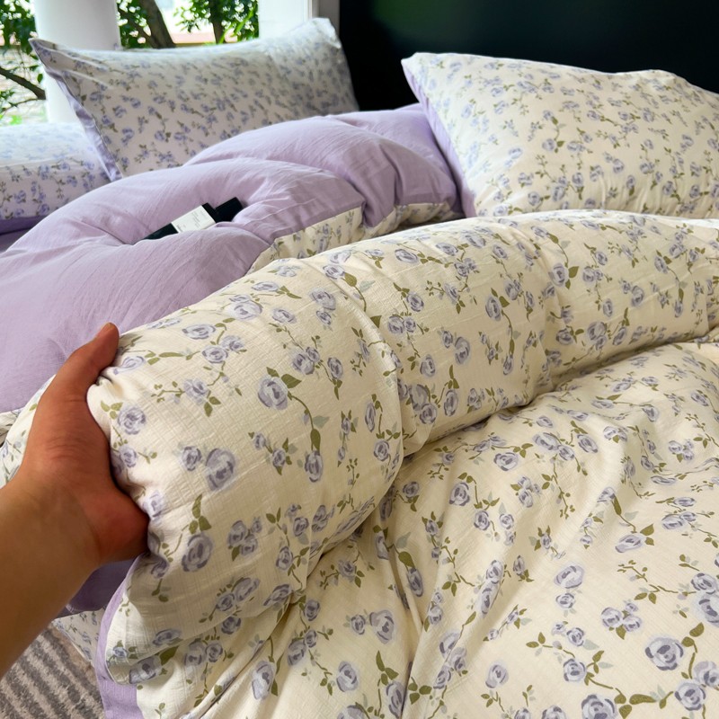 (总)一比一 2026新款云感皱皱双层纱四件套-全棉花边款【控价99元销售】,半夏绿,百福蓝,薄荷微凉,春风里,春晓,豆蔻,蝴蝶梦,可颂,兰黛,山野栀子,素颜,太妃糖,心动,遇见,芝士奶酪,紫爱心,紫苏,花园兔,蜡笔画,小黑兔,白茶-绿,初恋,莱茵河畔,桃花诺