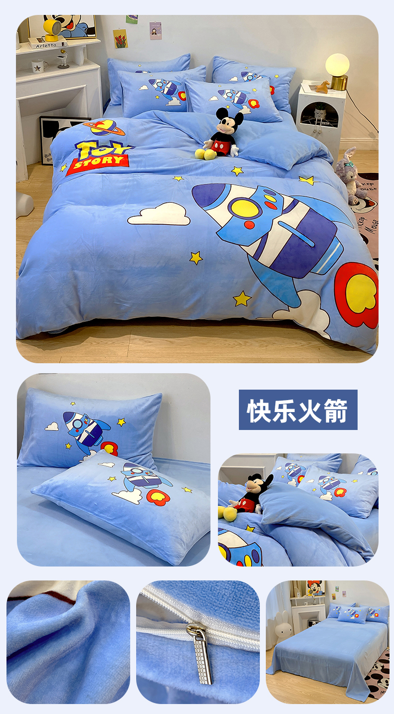 商品名称:孩子王 2023新款直播卡通大版学生双面加厚牛奶绒系列-独立版权 快乐火箭