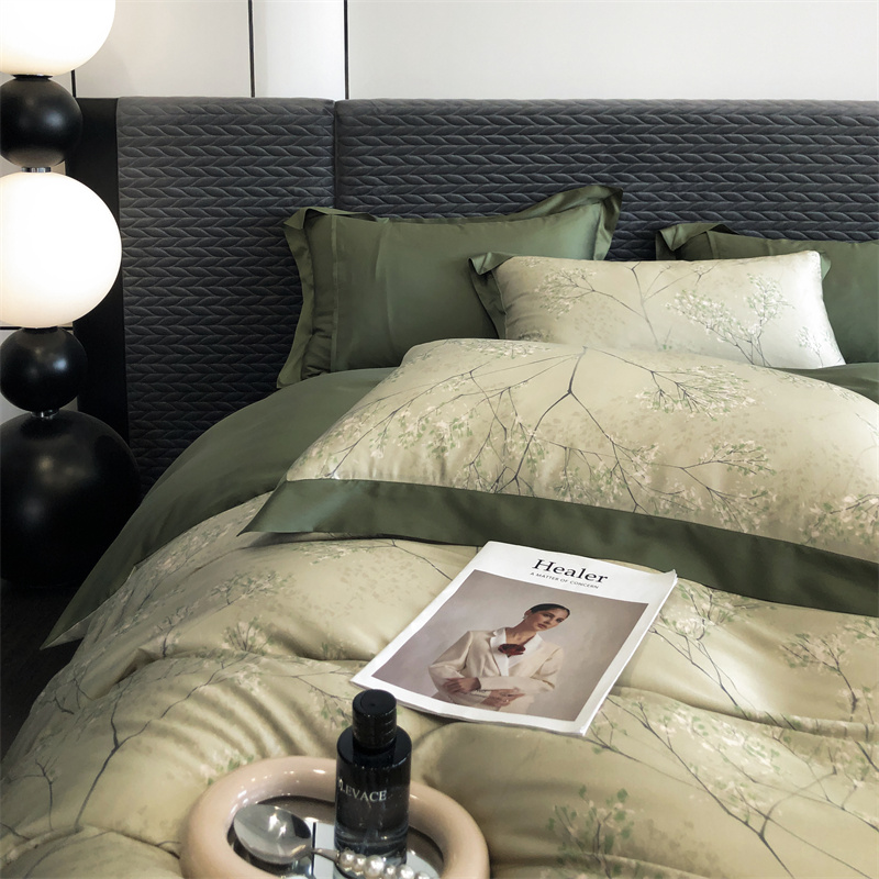 (总)时亿 2023新款100支长绒棉四件套苍兰之约,苍兰之约-橙,苍兰之约-绿