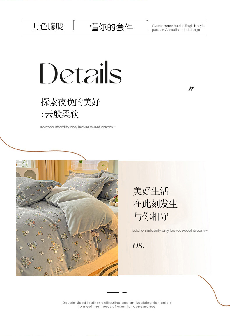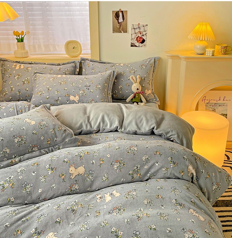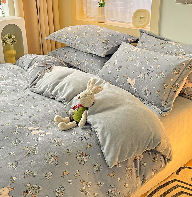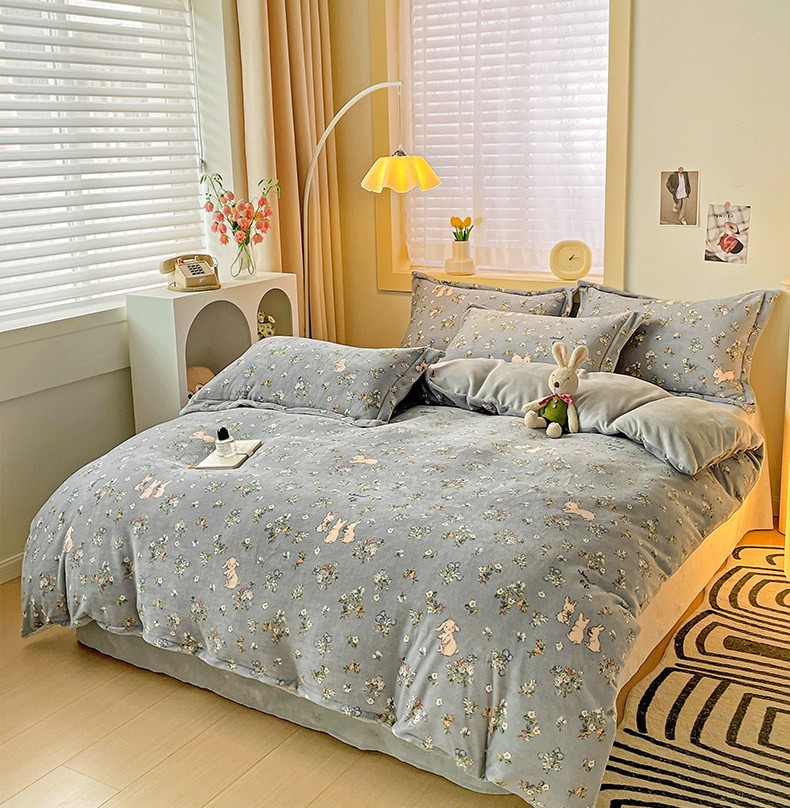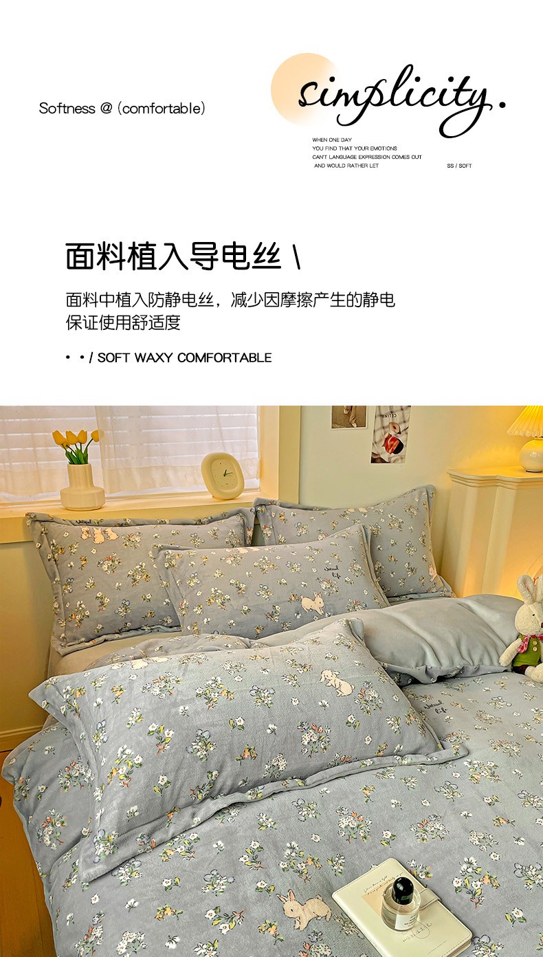 当前位置: 91家纺网 > 商品网购 > 床品套件 > 四件套 > 牛奶绒四件套 > 畅畅家纺 2023新款活性印花小清新AB版加厚高克重法莱绒牛奶绒四件套 可可里